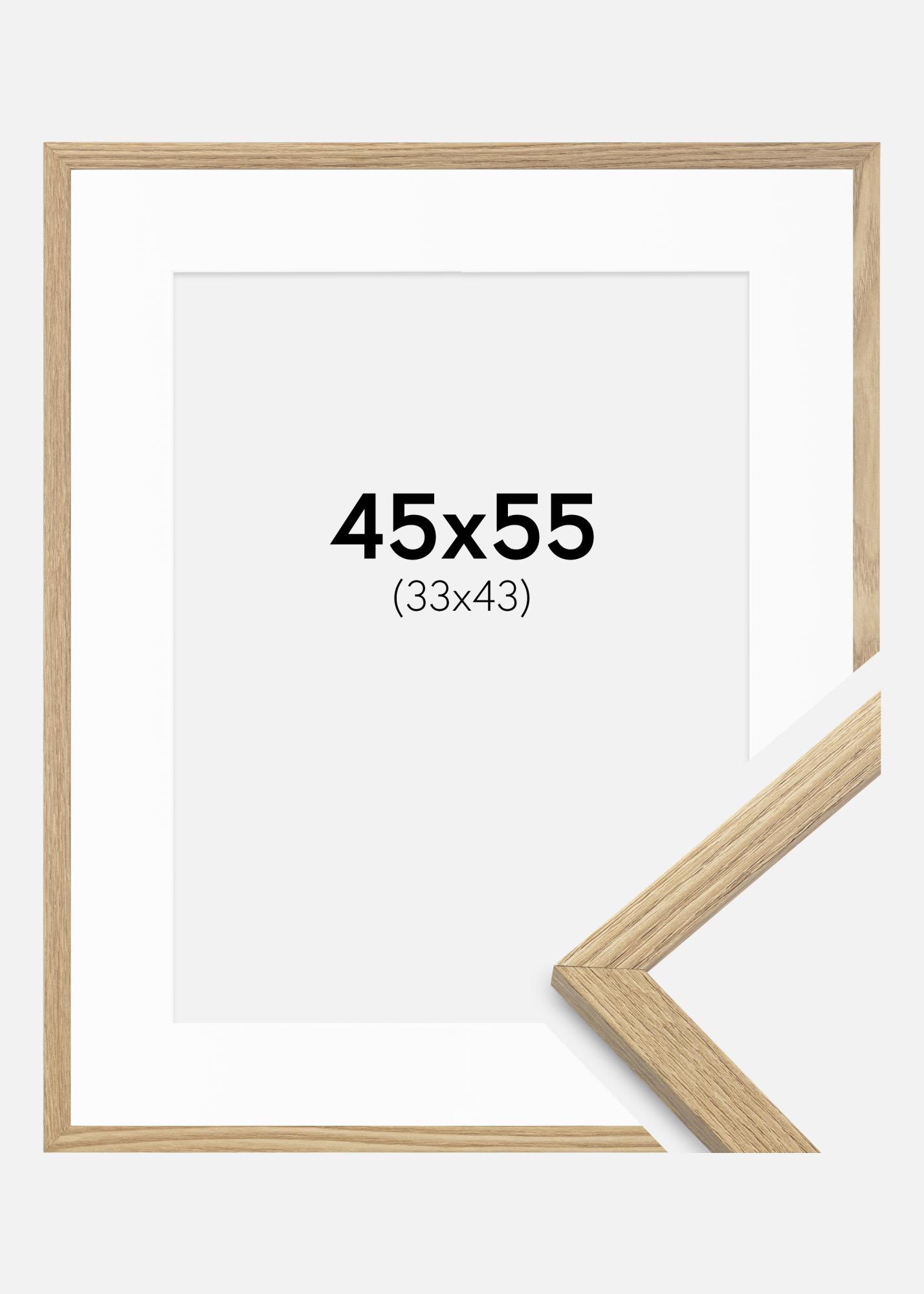 Tämä tyylikäs tammikuviollinen kehys passepartout'lla on täydellinen valinta korostamaan suosikkikuviasi. Kehyksen koko on 47,2x57,2 cm ja passepartout sopii kuville, joiden koko on 34x44 cm, tarjoten siistin kehystyksen, joka antaa kuvillesi ammattimaisen ilmeen.