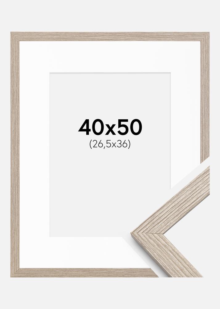 Kehys Stilren Greige tammi 40x50 cm - Passepartout Valkoista 27,5x37 cm