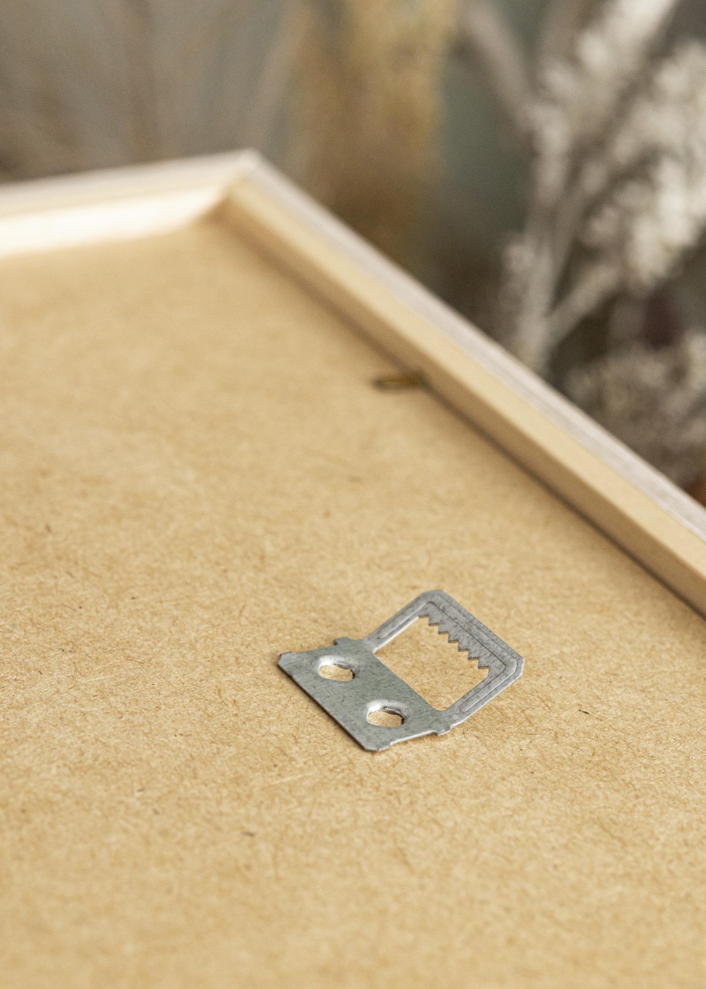 Kehykseen on kiinnitetty takapuolelle metalliset ripustimet, mikä helpottaa sen ripustamista sekä vaaka- että pystysuoraan, riippuen siitä, mikä sopii parhaiten tilaasi. Ulkomittojen ollessa 62x82 cm, tämä kehys on vaikuttava yksityiskohta seinällä.