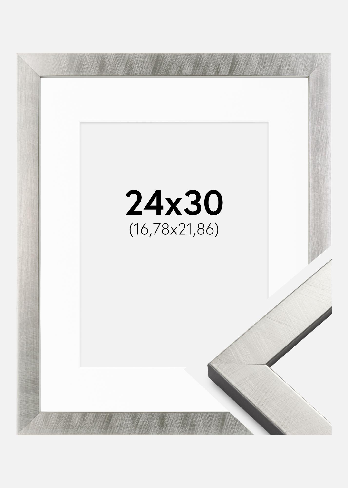 Kehys Uppsala Hopeanvärinen 24x30 cm - Passepartout Valkoinen 7x9 inches