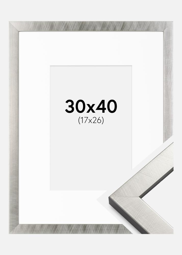 Kehys Uppsala Hopeanvärinen 30x40 cm - Passepartout Valkoinen 18x27 cm