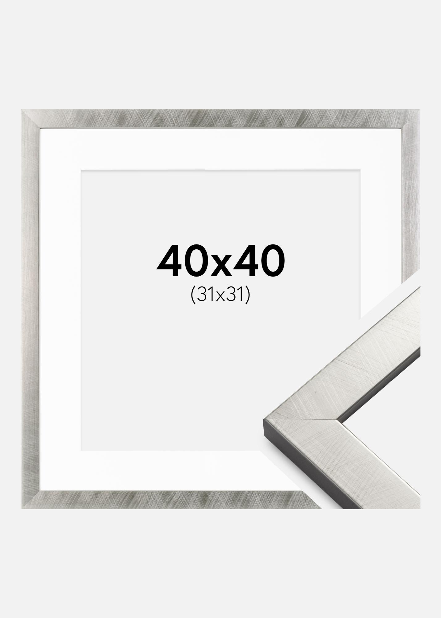 Kehys Uppsala Hopeanvärinen 40x40 cm - Passepartout Valkoinen 32x32 cm