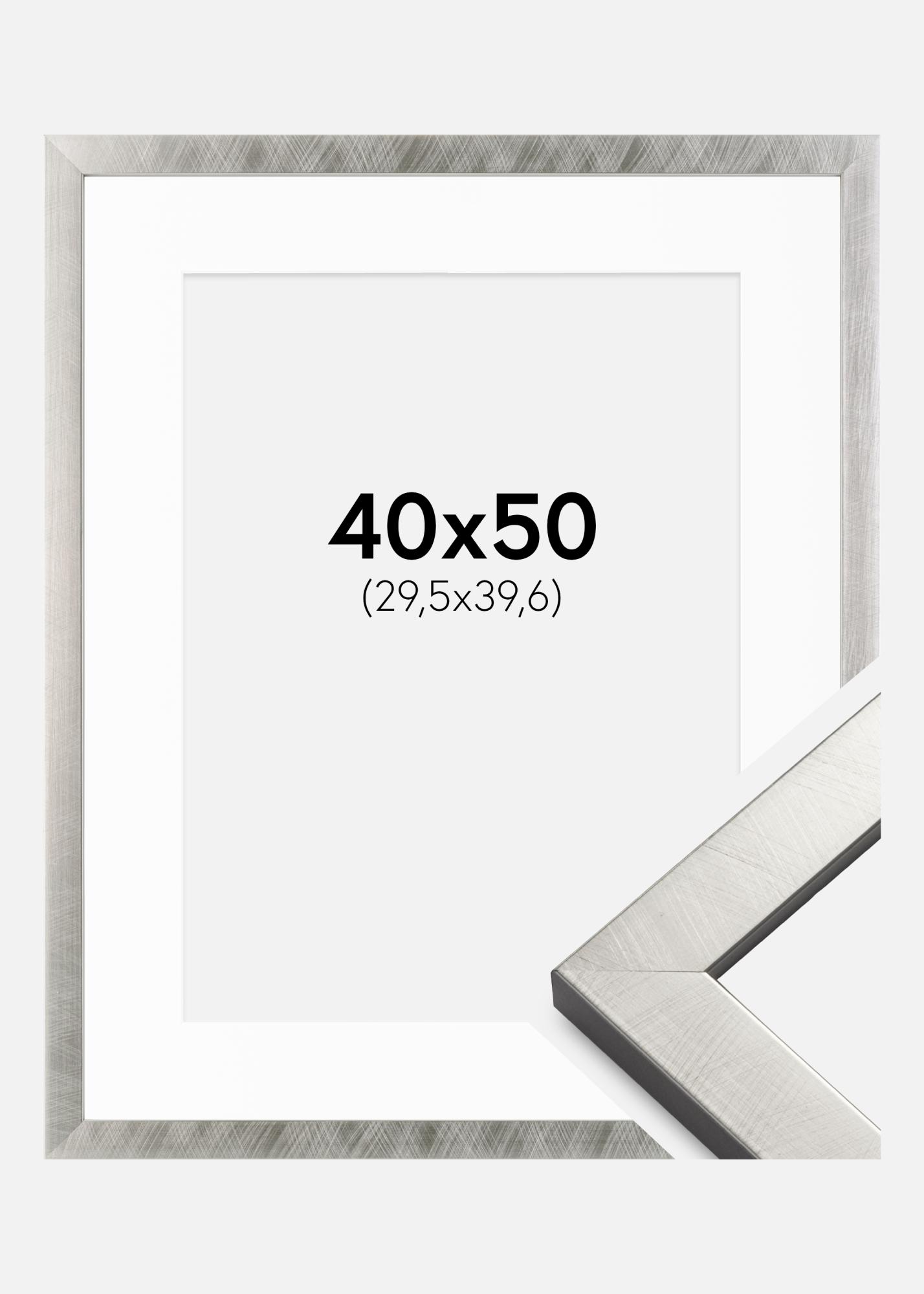 Kehys Uppsala Hopeanvärinen 40x50 cm - Passepartout Valkoinen 12x16 inches