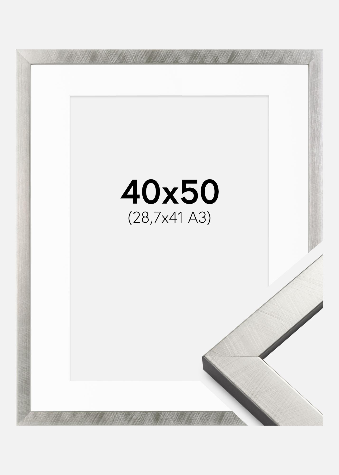 Kehys Uppsala Hopeanvärinen 40x50 cm - Passepartout Valkoinen 29,7x42 cm (A3)
