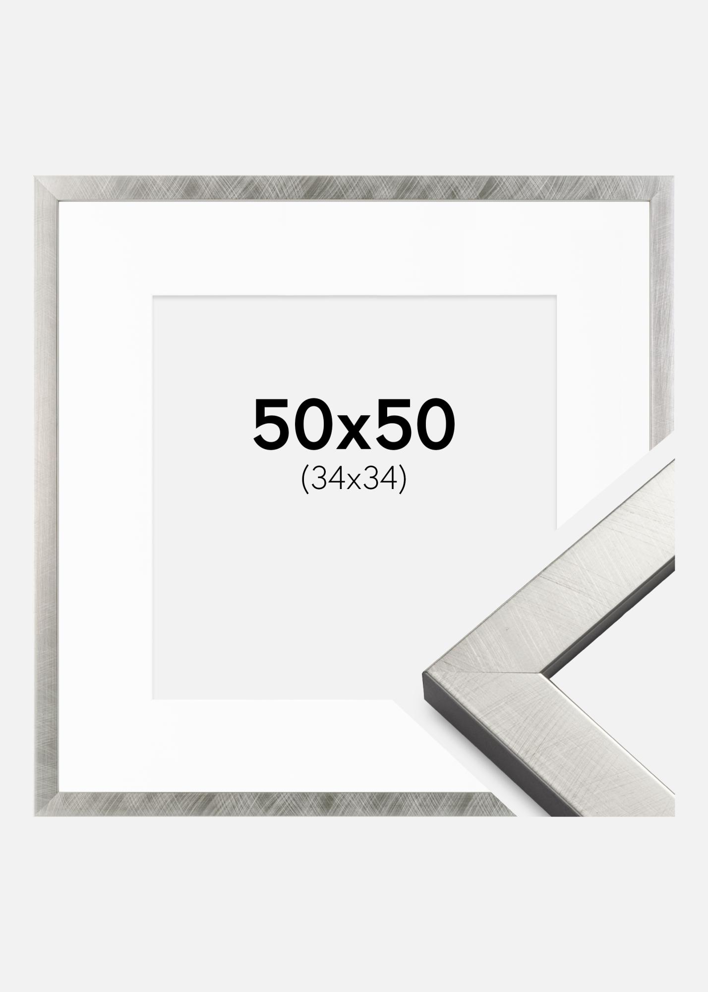Kehys Uppsala Hopeanvärinen 50x50 cm - Passepartout Valkoinen 35x35 cm