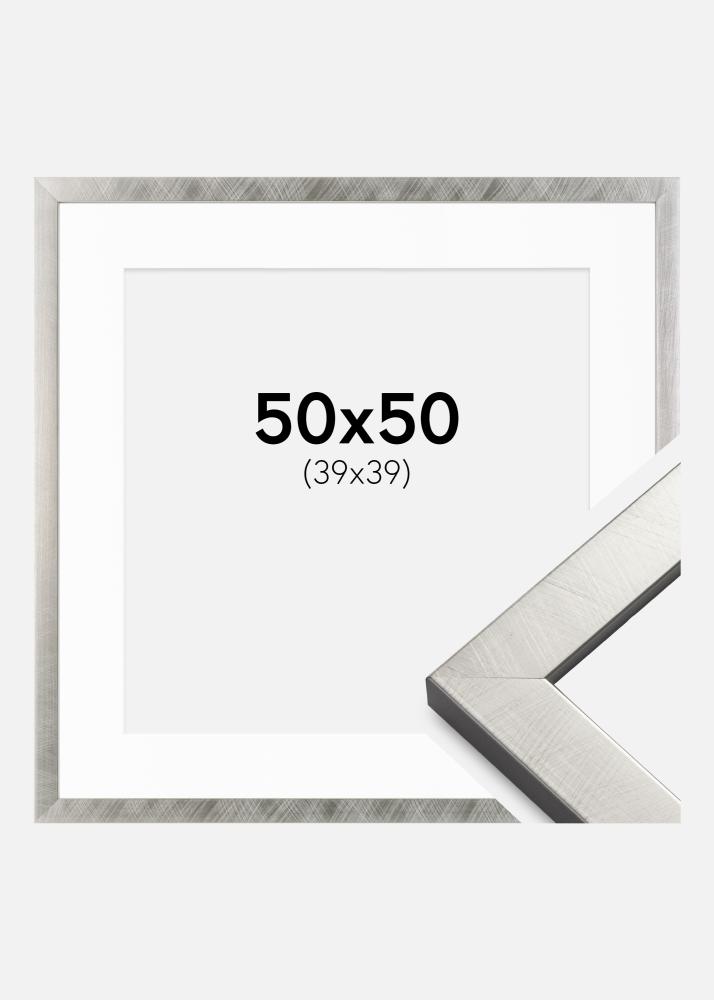 Kehys Uppsala Hopeanvärinen 50x50 cm - Passepartout Valkoinen 40x40 cm