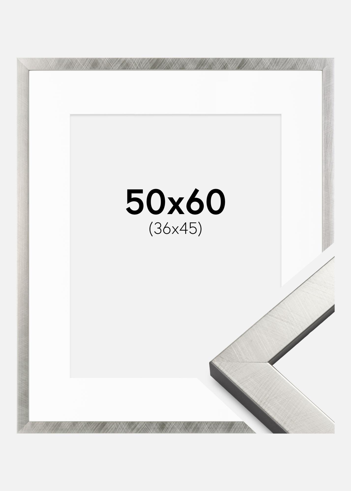 Kehys Uppsala Hopeanvärinen 50x60 cm - Passepartout Valkoinen 37x46 cm