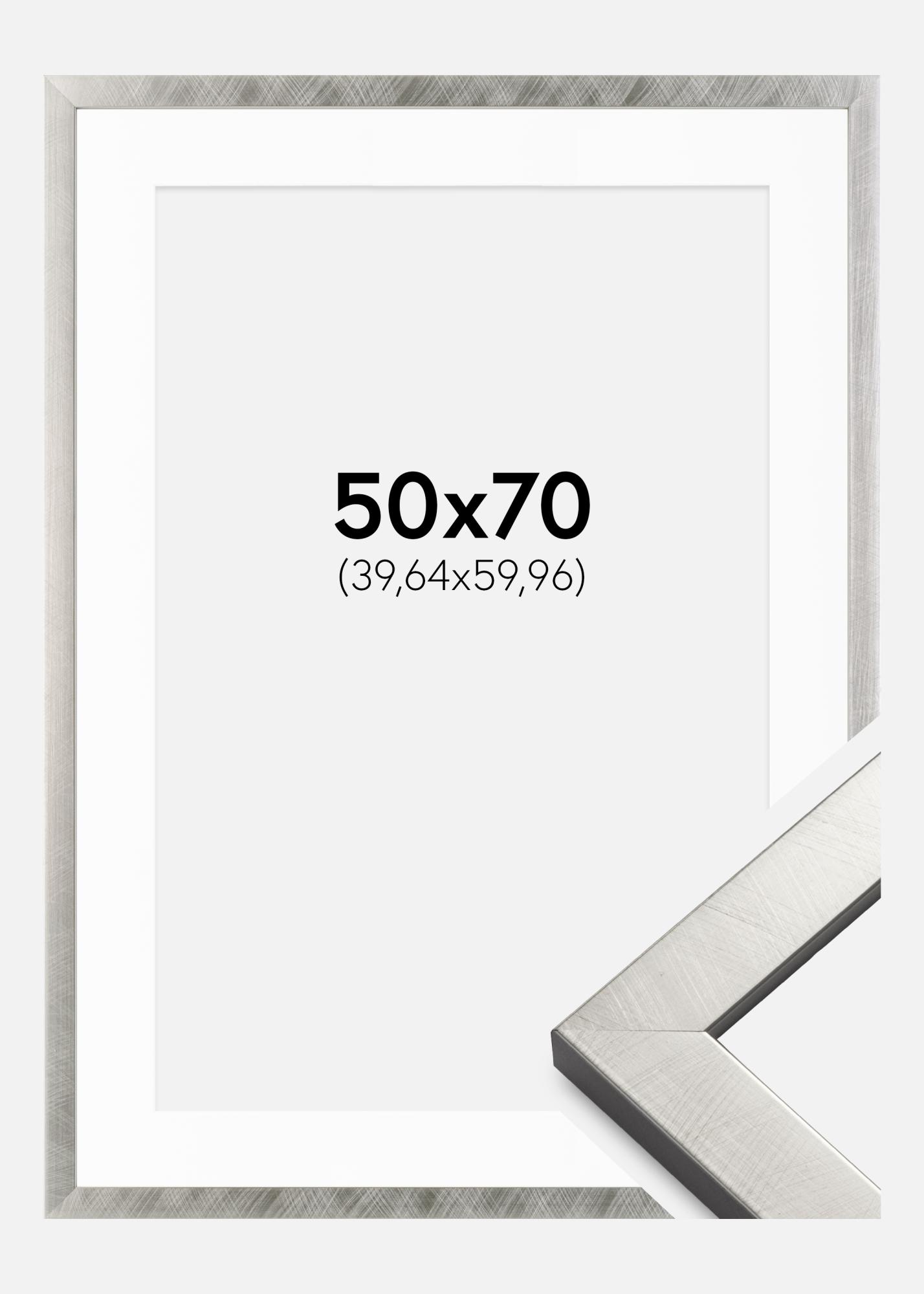 Kehys Uppsala Hopeanvärinen 50x70 cm - Passepartout Valkoinen 16x24 inches