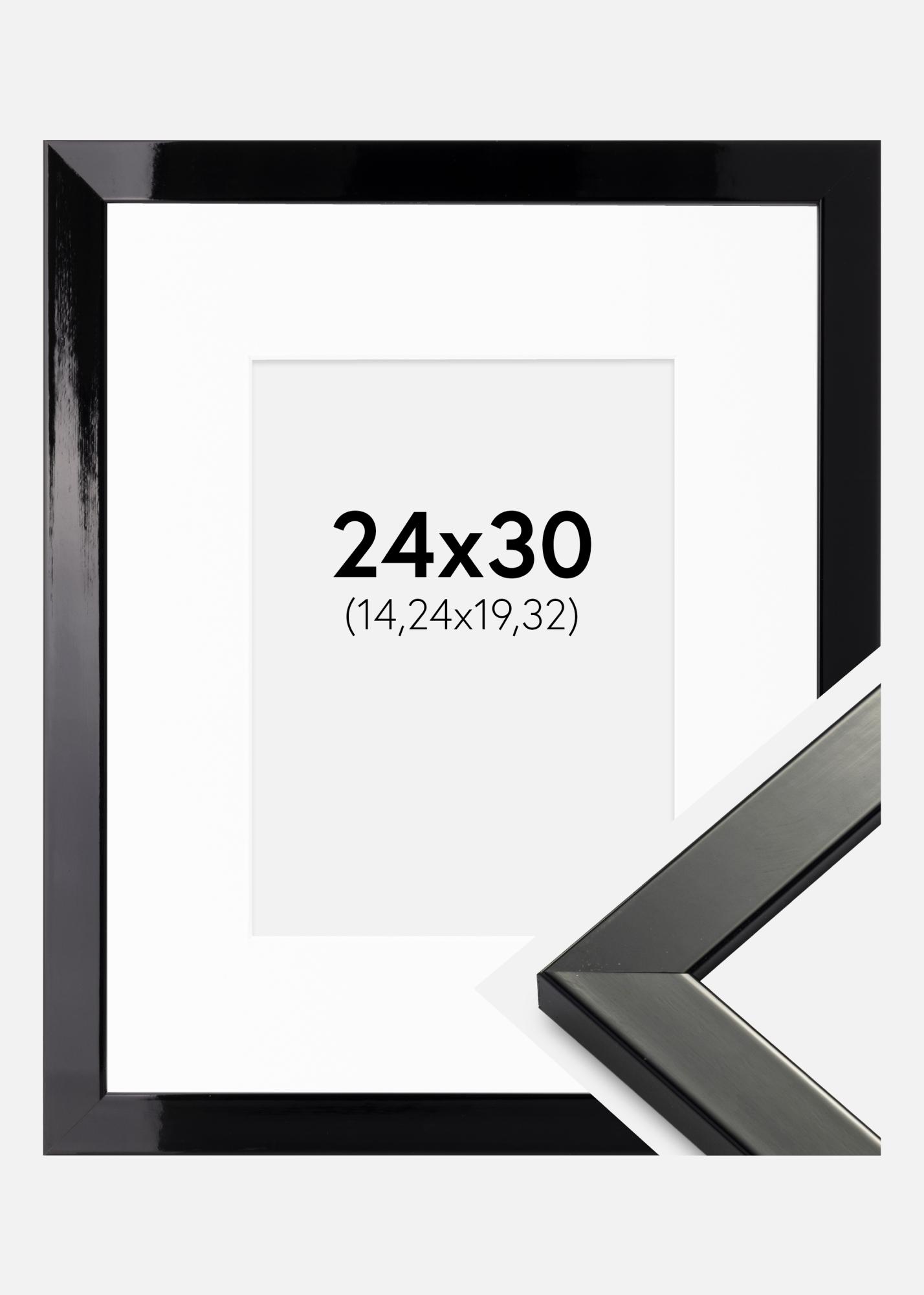 Kehys Uppsala Musta Kiiltävä 24x30 cm - Passepartout Valkoinen 6x8 inches