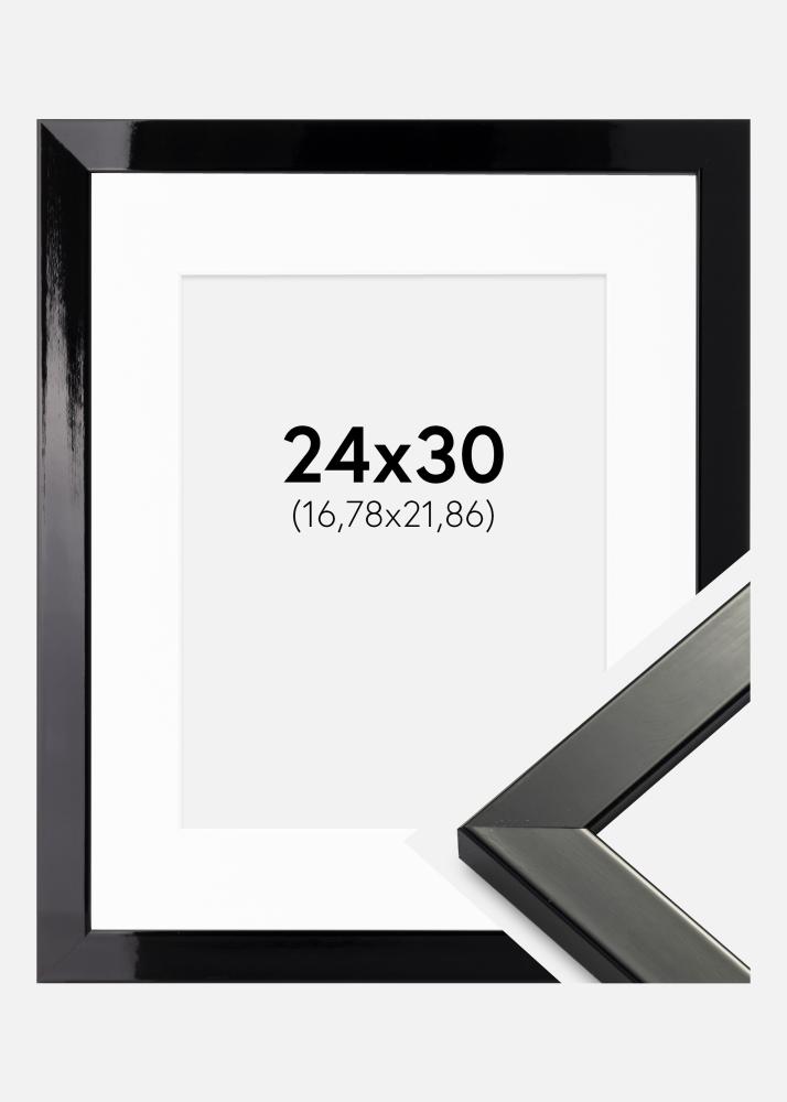 Kehys Uppsala Musta Kiiltävä 24x30 cm - Passepartout Valkoinen 7x9 inches