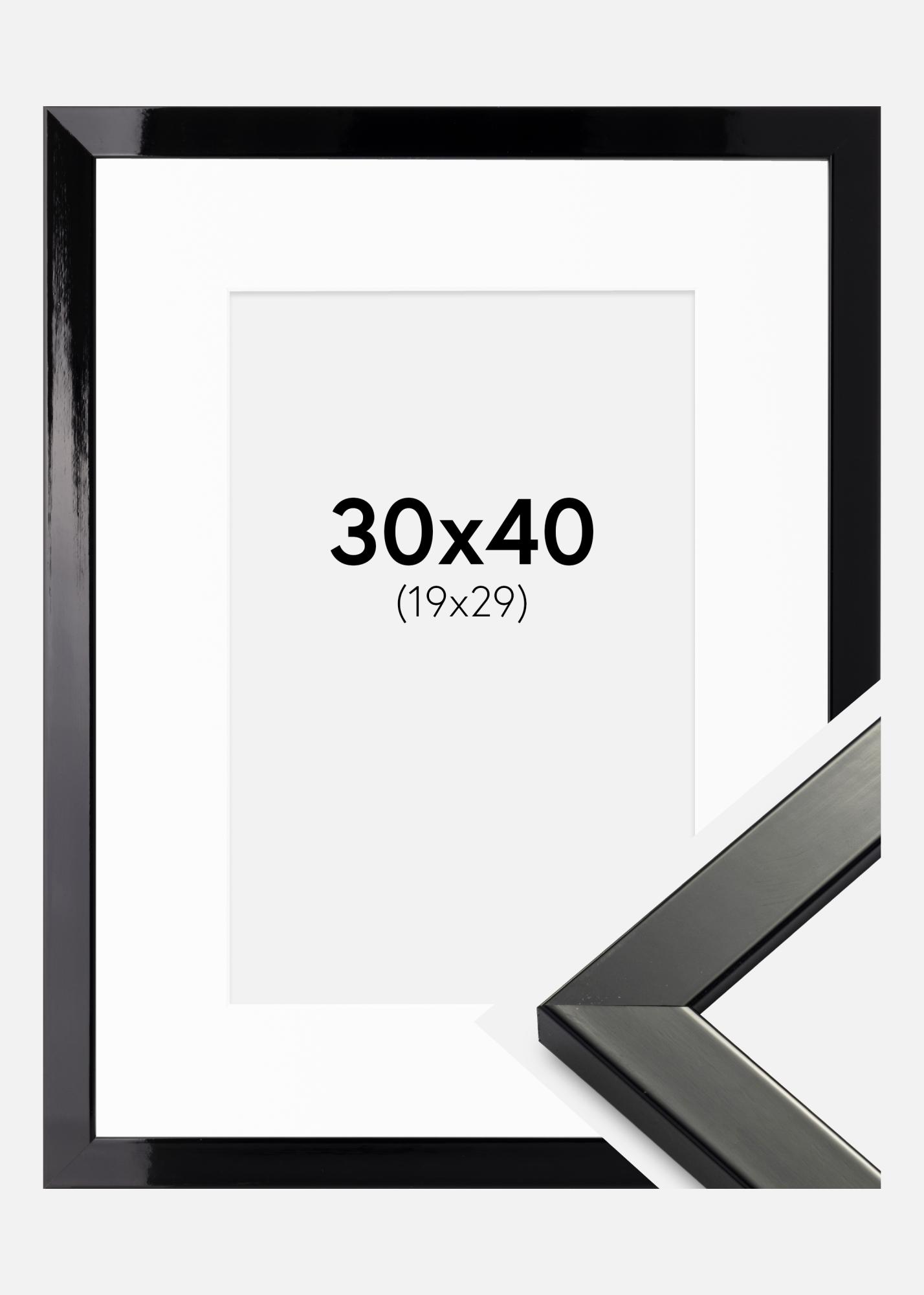 Kehys Uppsala Musta Kiiltävä 30x40 cm - Passepartout Valkoinen 20x30 cm