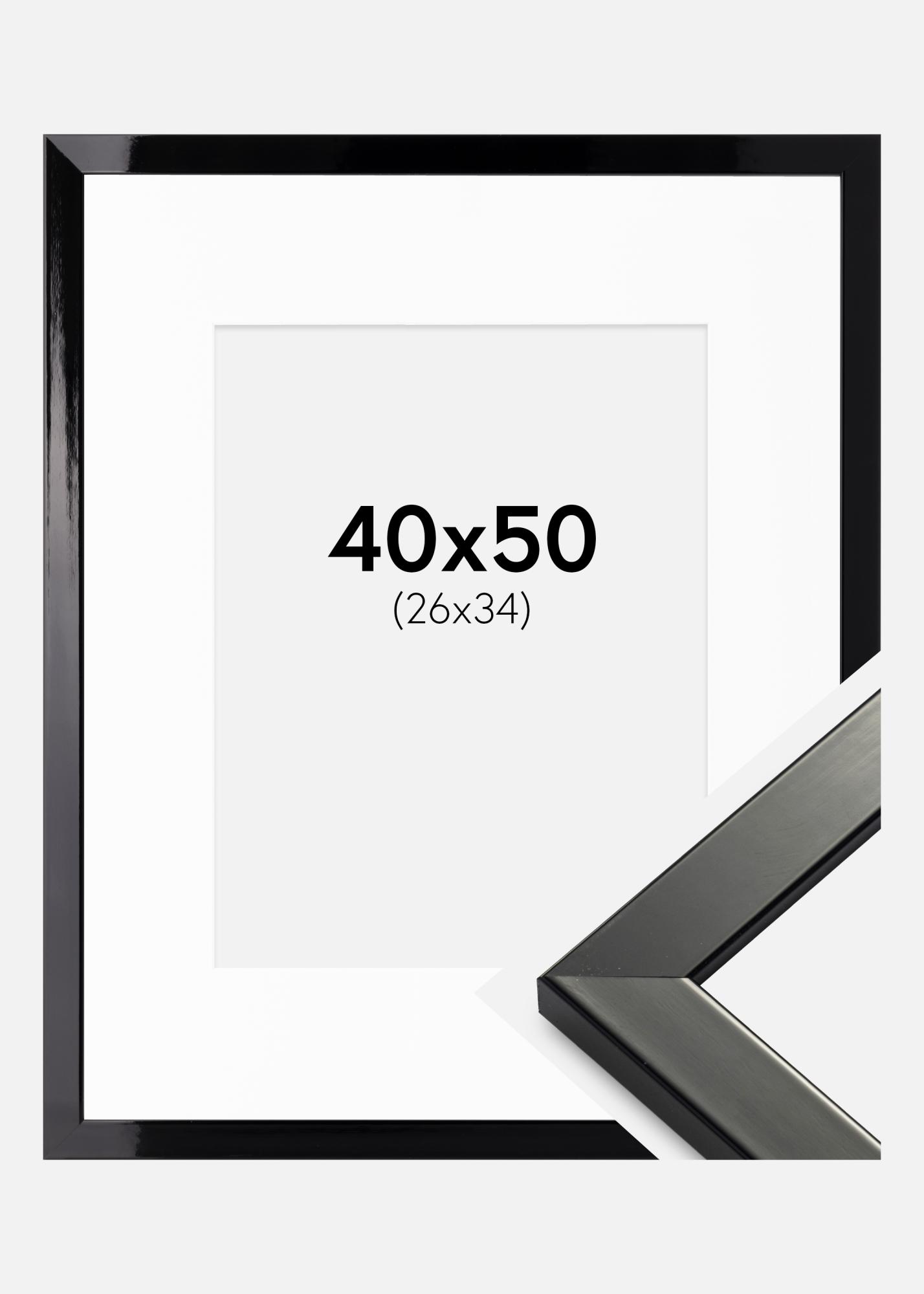 Kehys Uppsala Musta Kiiltävä 40x50 cm - Passepartout Valkoinen 27x35 cm