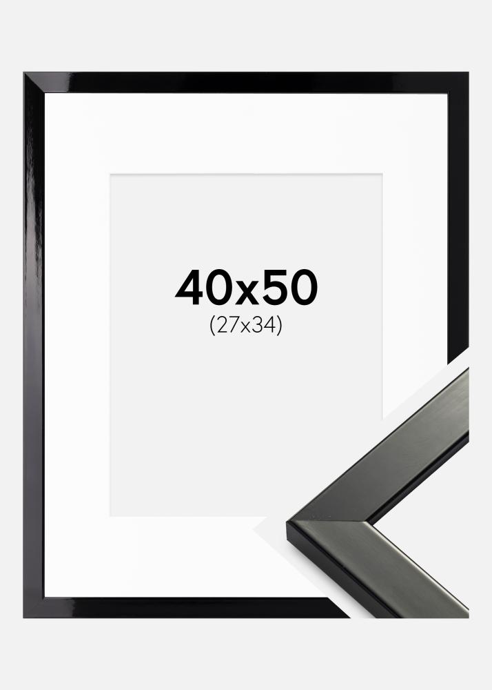 Kehys Uppsala Musta Kiiltävä 40x50 cm - Passepartout Valkoinen 28x35 cm