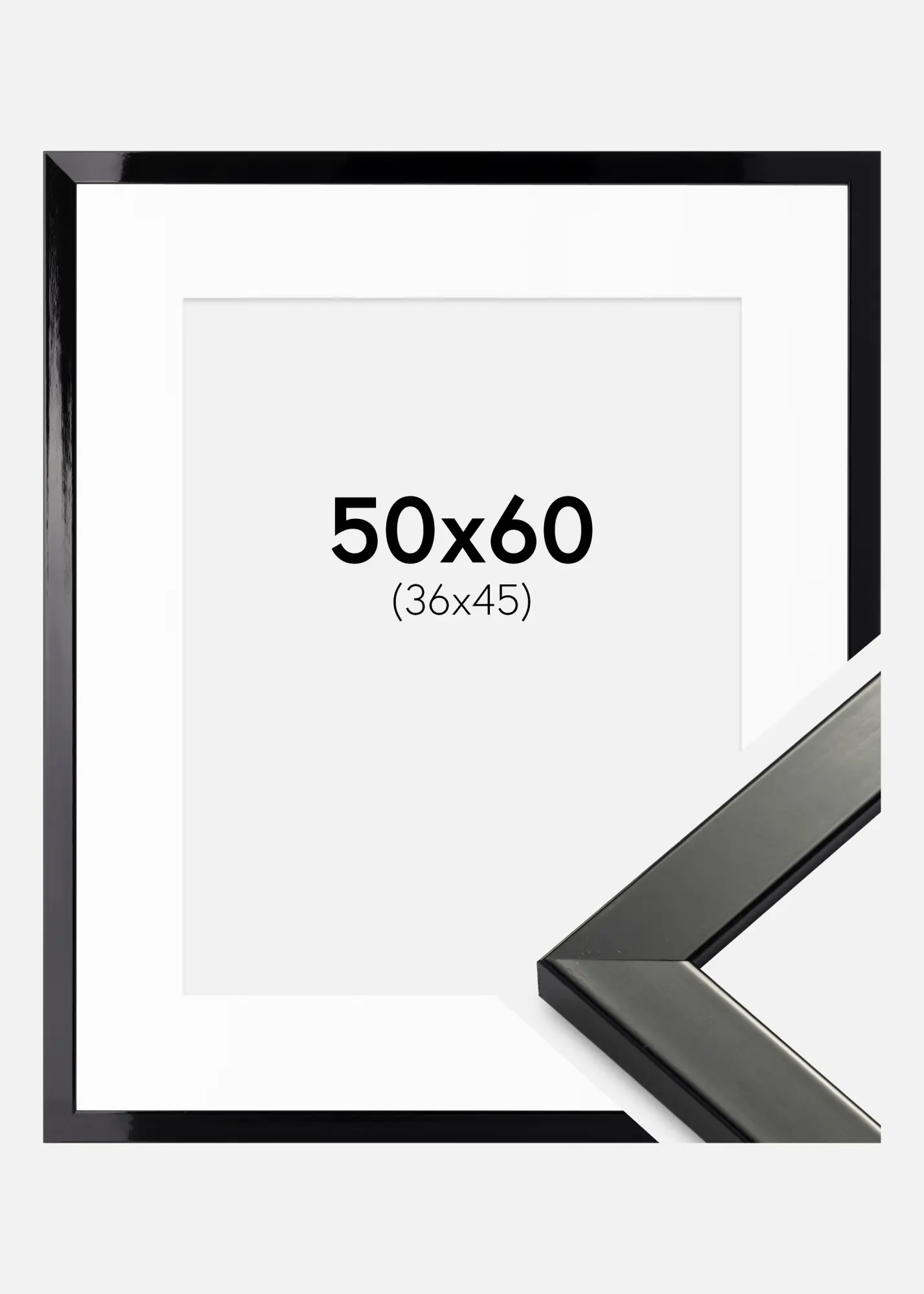 Kehys Uppsala Musta Kiiltävä 50x60 cm - Passepartout Valkoinen 37x46 cm