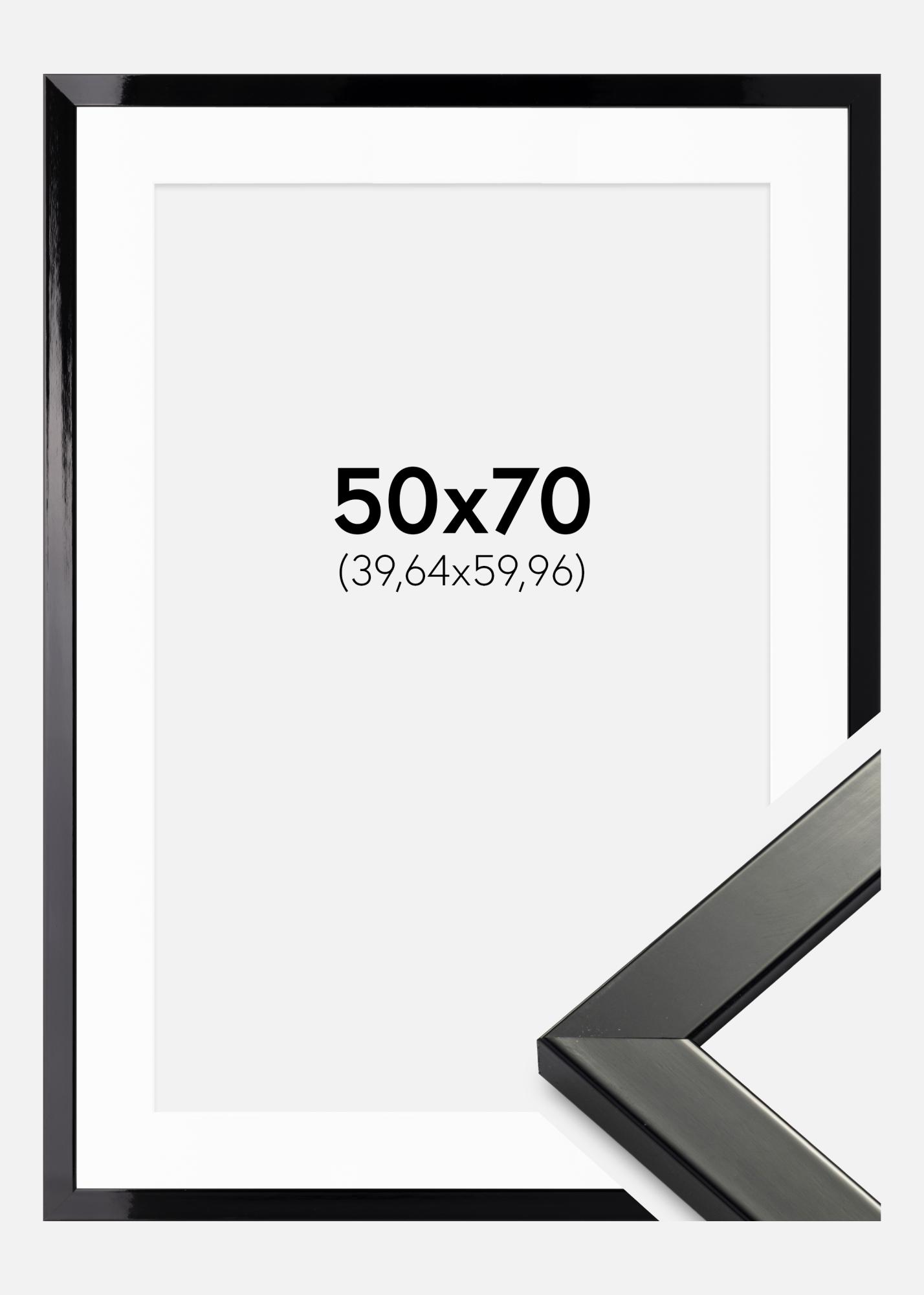 Kehys Uppsala Musta Kiiltävä 50x70 cm - Passepartout Valkoinen 16x24 inches