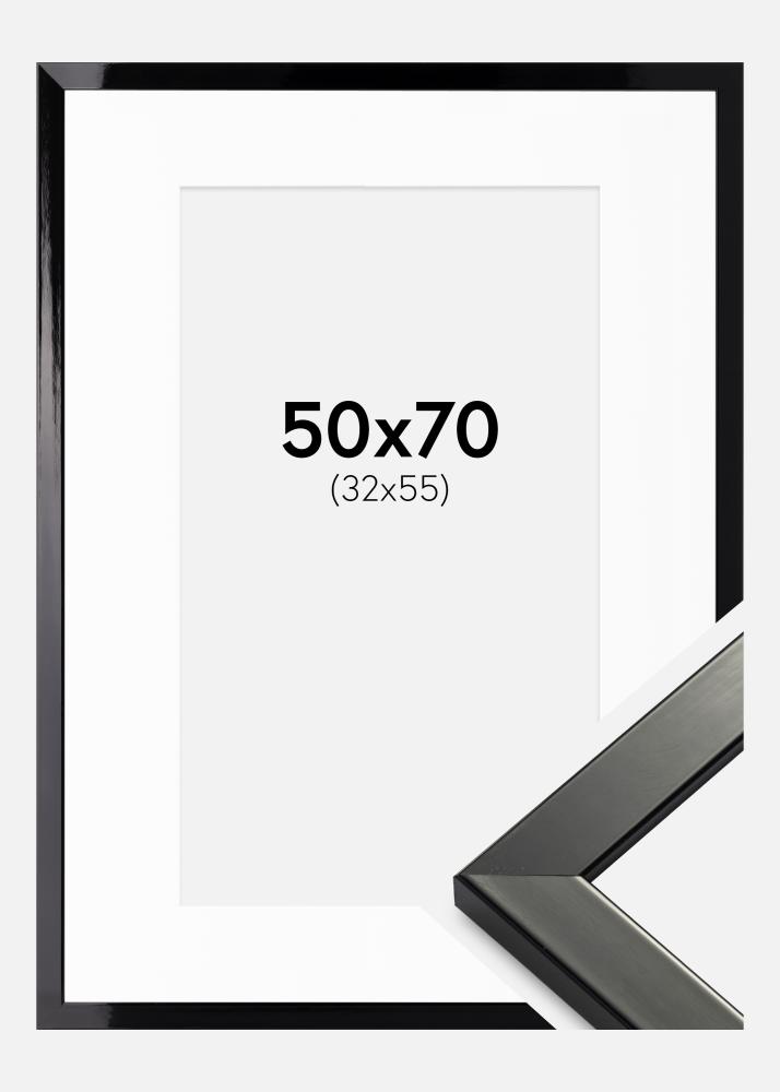 Kehys Uppsala Musta Kiiltävä 50x70 cm - Passepartout Valkoinen 33x56 cm