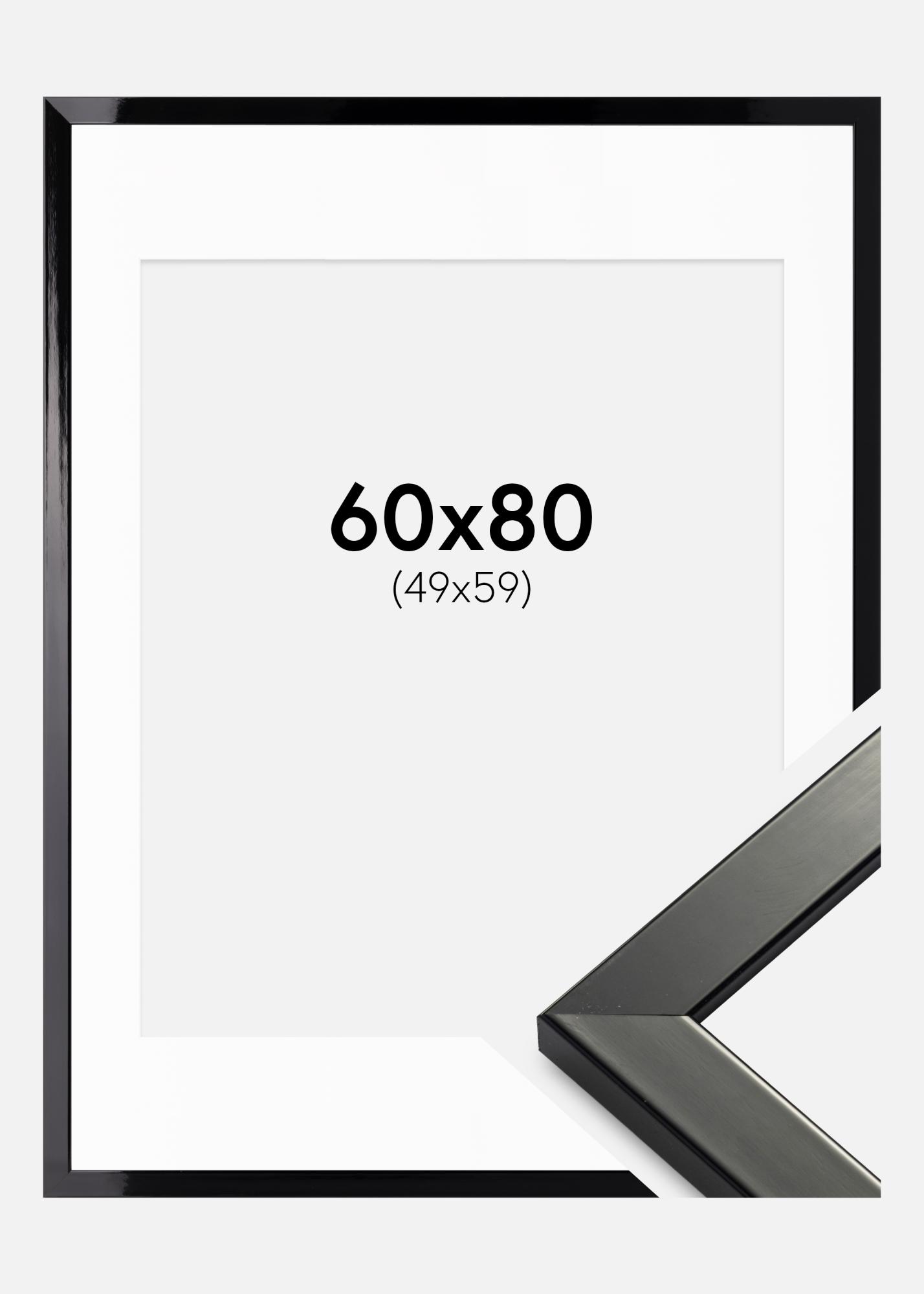 Kehys Uppsala Musta Kiiltävä 60x80 cm - Passepartout Valkoinen 50x60 cm