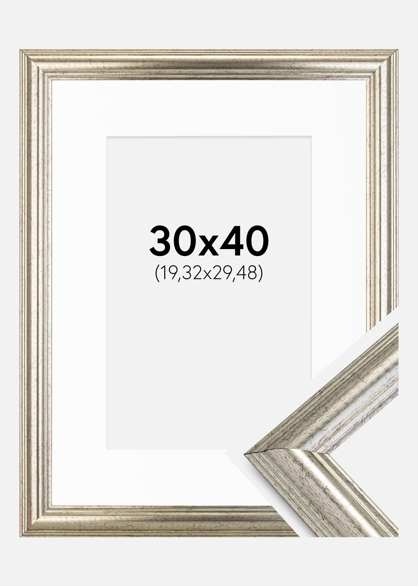 Kehys Västkusten Hopeanvärinen 30x40 cm - Passepartout Valkoinen 8x12 inches