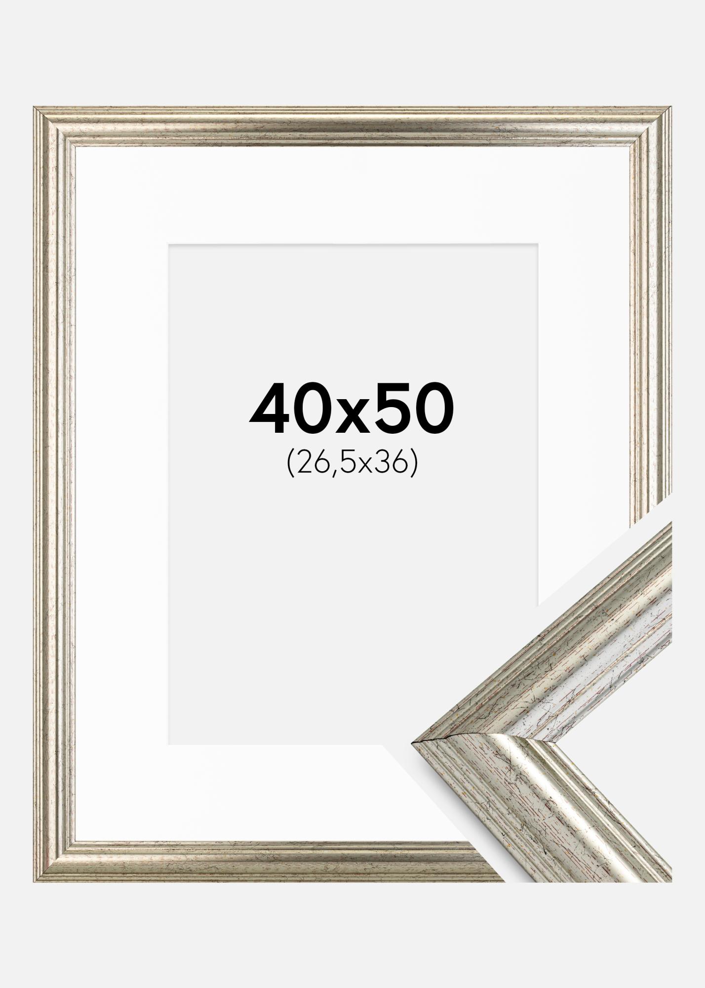 Kehys Västkusten Hopeanvärinen 40x50 cm - Passepartout Valkoinen 27,5x37 cm