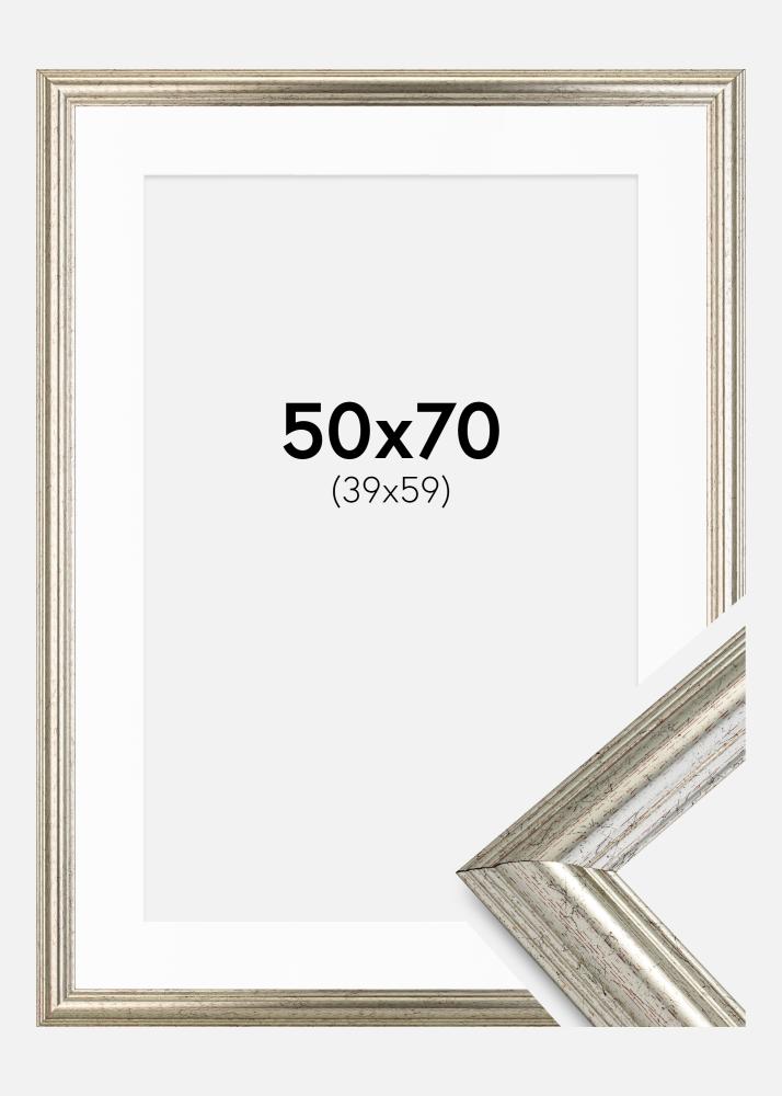 Kehys Västkusten Hopeanvärinen 50x70 cm - Passepartout Valkoinen 40x60 cm