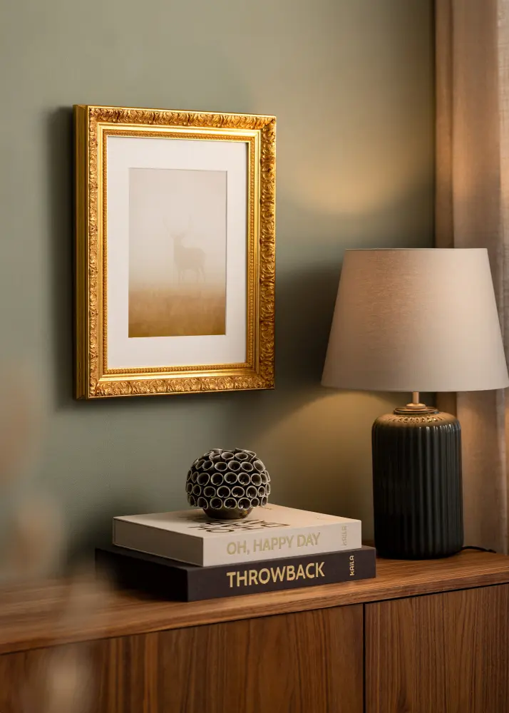 Vesta Kulta -kehys on täydellinen ratkaisu sinulle, joka etsit eleganttia ja ajaton kehysratkaisua suosikkikuvillesi. Klassisen kultainen väri ja yksityiskohtaiset koristeet antavat tälle valokuvakehykselle ylellisyyden ja perinteen tunteen mihin tahansa huoneeseen. Antiikkiviimeistely yhdessä hienovaraisten punaisten vivahteiden kanssa luo lämpimän ja kutsuvan ilmapiirin, joka täydentää sekä moderneja että klassisia sisustustyylejä.