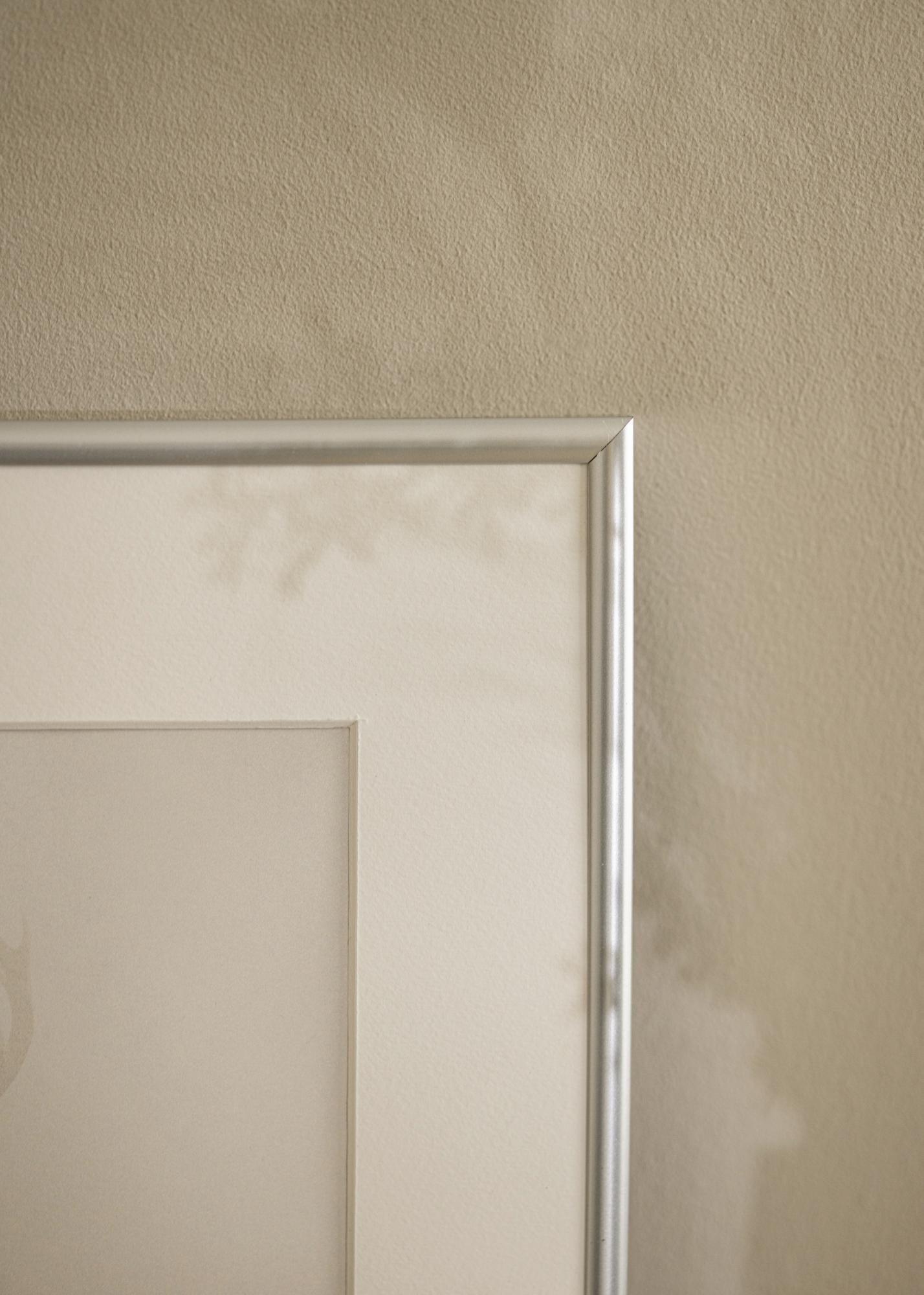Tämä hopeanvärinen kehys on trendikkään kiiltävä ja sopii täydellisesti kaikkiin moderneihin koteihin. Kehyksessä on ohut kehyslista pyöristetyllä profiililla, mikä tekee kehyksestä hienon sisustusyksityiskohdan, joka ei vie huomiota pois motiiveistasi. Runsas sisäsyvyys 15 mm mahdollistaa myös tyylikkään passepartout'n asentamisen kehykseen.
