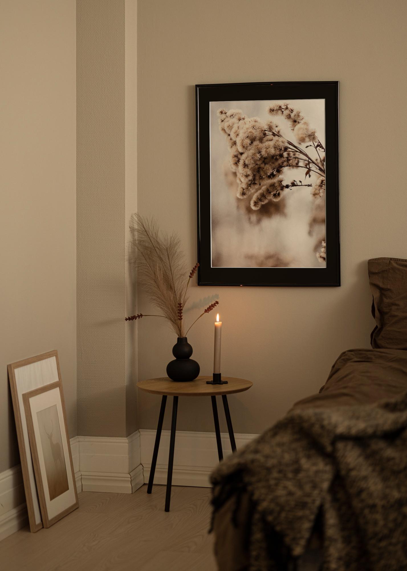 Paketti, johon kuuluu kehys ja kehykseen sopiva musta paspatuuri. Tuotekuvassa näet kehyksen mitat (lihavoituna) ja paspatuurin sisämitat (suluissa). Huomioi, että paspatuurin sisämittojen tulee olla aina 1 cm pienemmät kuin haluttu kuvakoko.