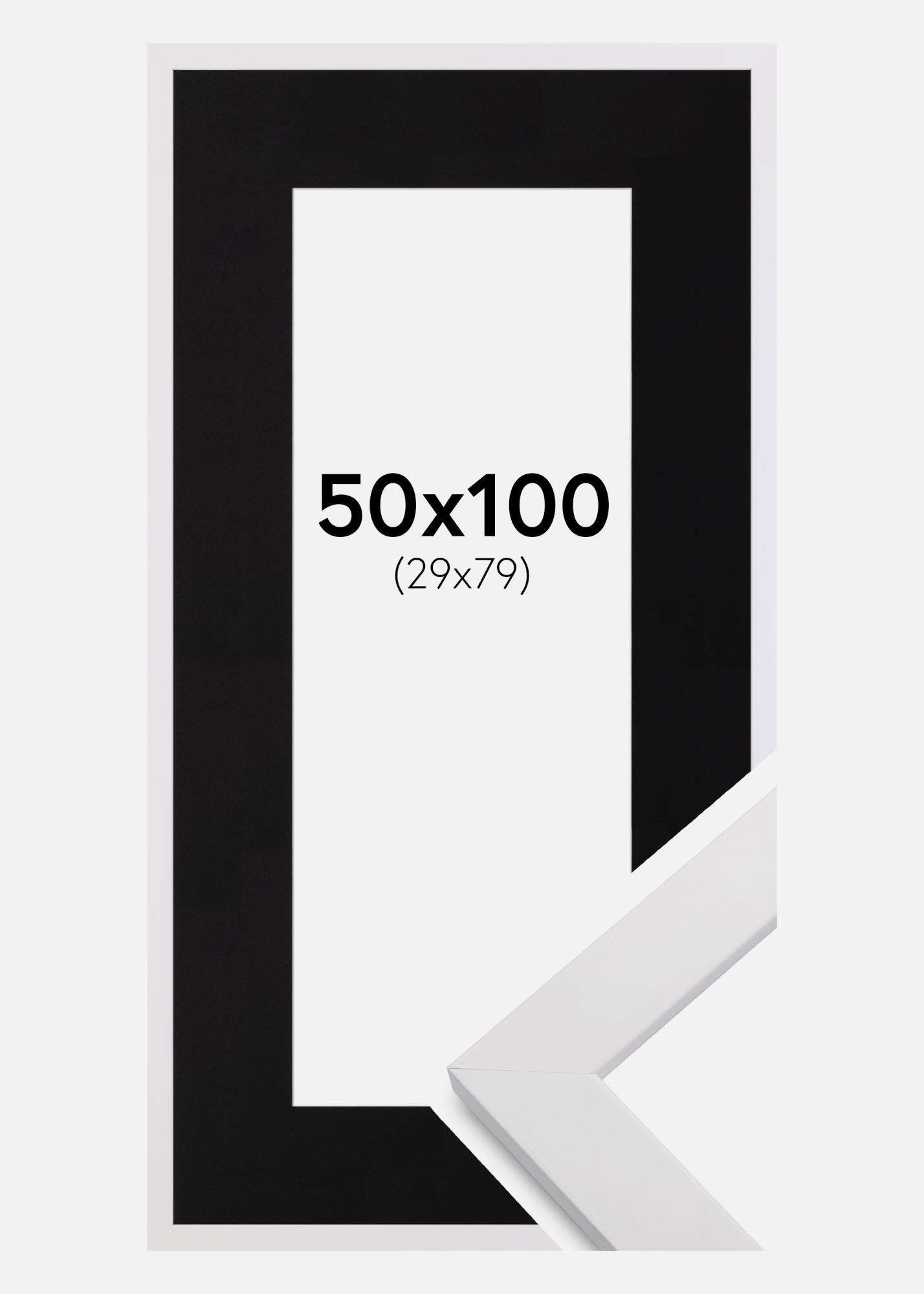 Kehys White Wood 50x100 cm - Passepartout Musta 30x80 cm
