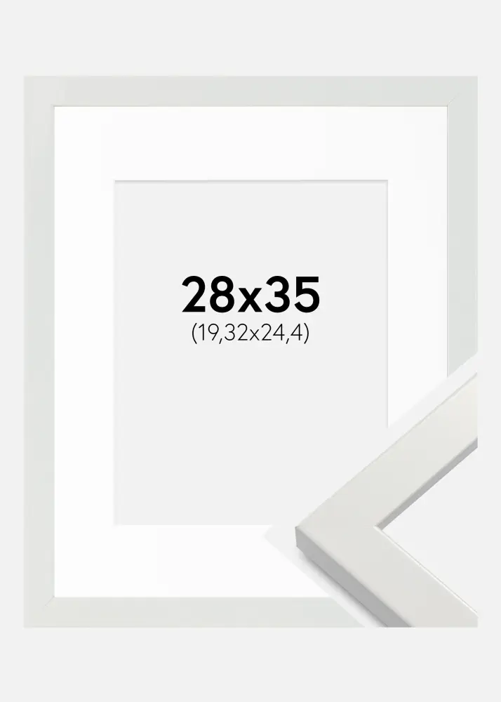 Kehys White Wood Glossy 28x35 cm - Passepartout Valkoinen 8x10 inches