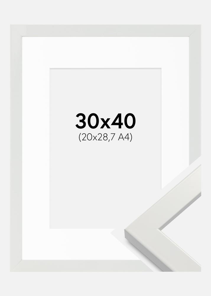 Kehys White Wood Glossy 30x40 cm - Passepartout Valkoinen 21x29,7 cm (A4)