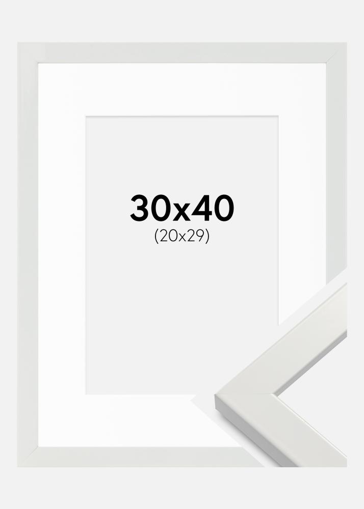 Kehys White Wood Glossy 30x40 cm - Passepartout Valkoinen 21x30 cm