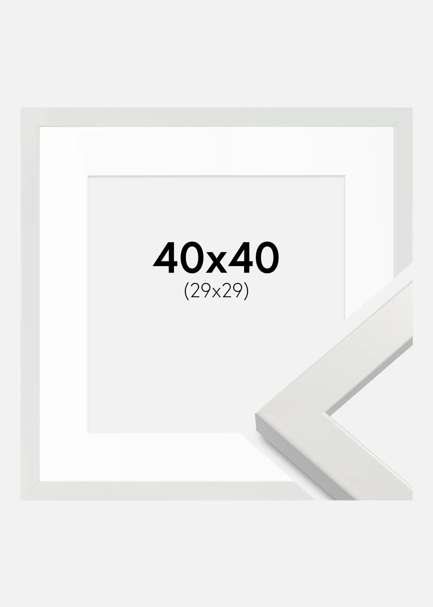 Kehys White Wood Glossy 40x40 cm - Passepartout Valkoinen 30x30 cm