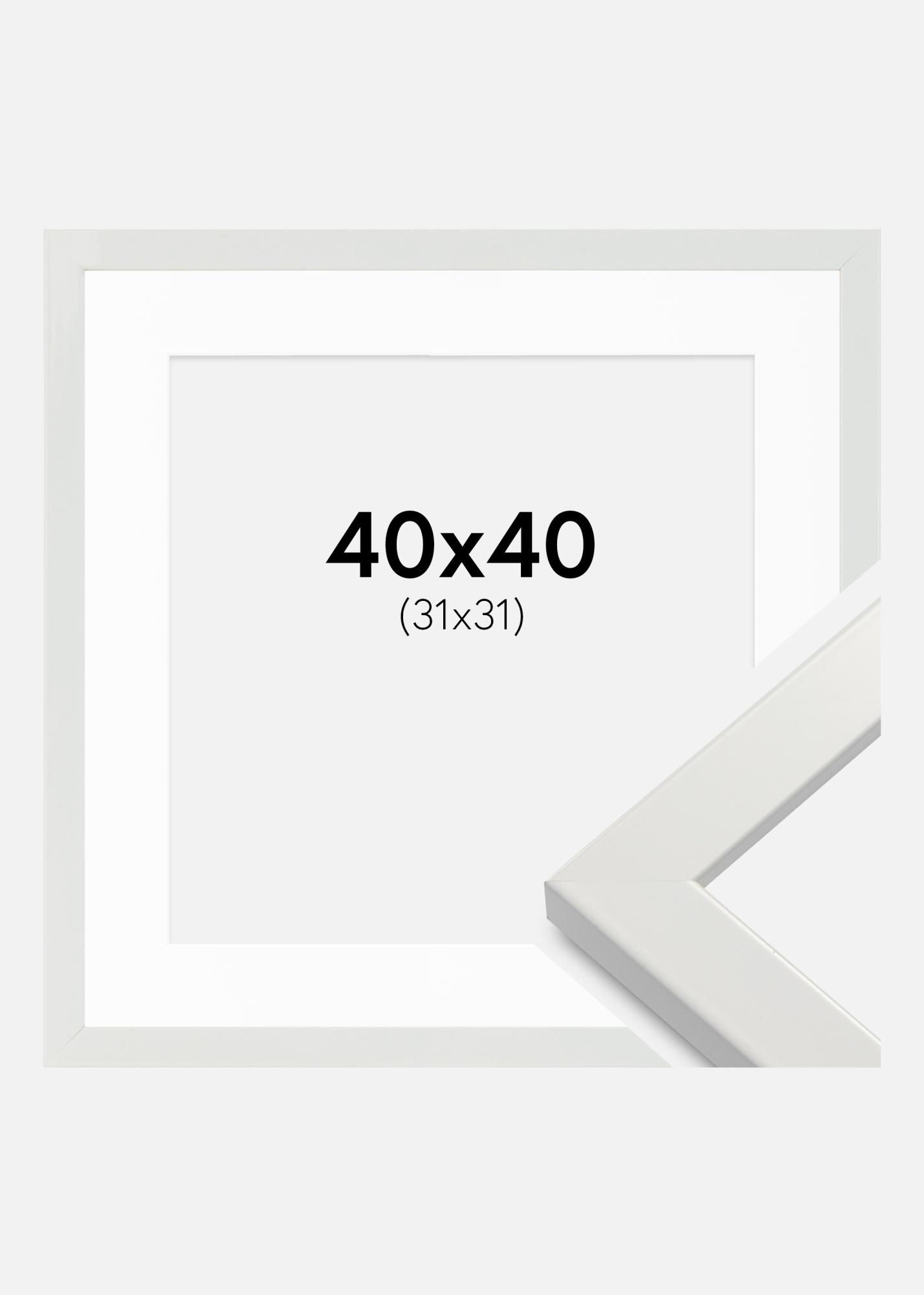 Kehys White Wood Glossy 40x40 cm - Passepartout Valkoinen 32x32 cm