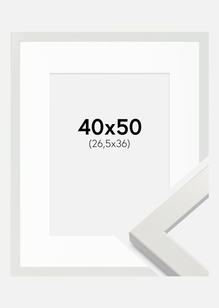 Kehys White Wood Glossy 40x50 cm - Passepartout Valkoinen 27,5x37 cm