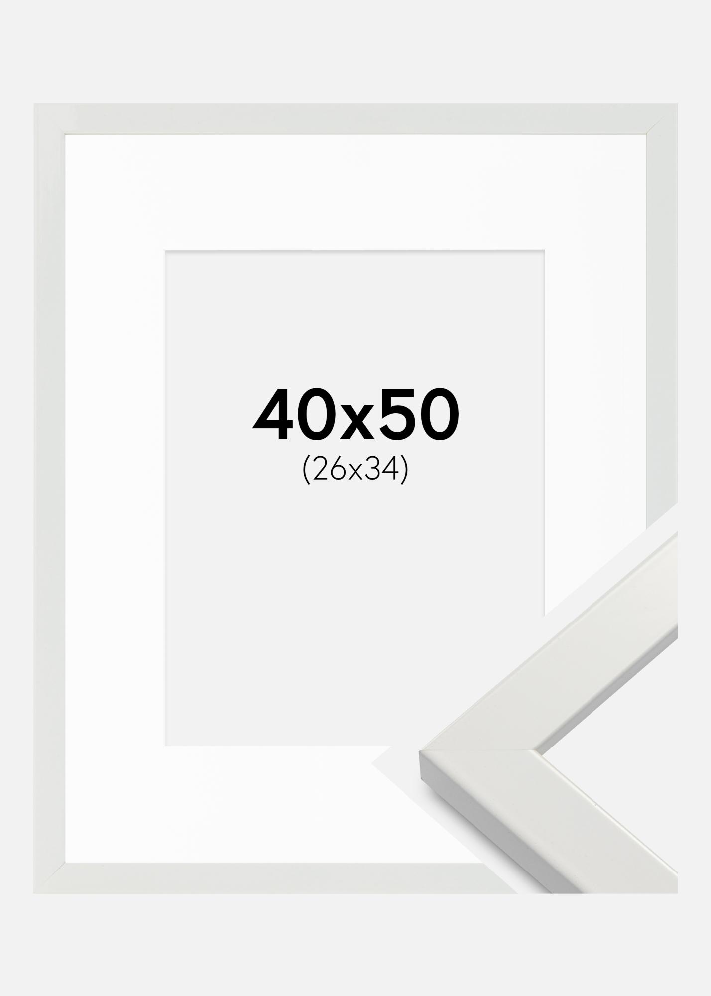 Kehys White Wood Glossy 40x50 cm - Passepartout Valkoinen 27x35 cm