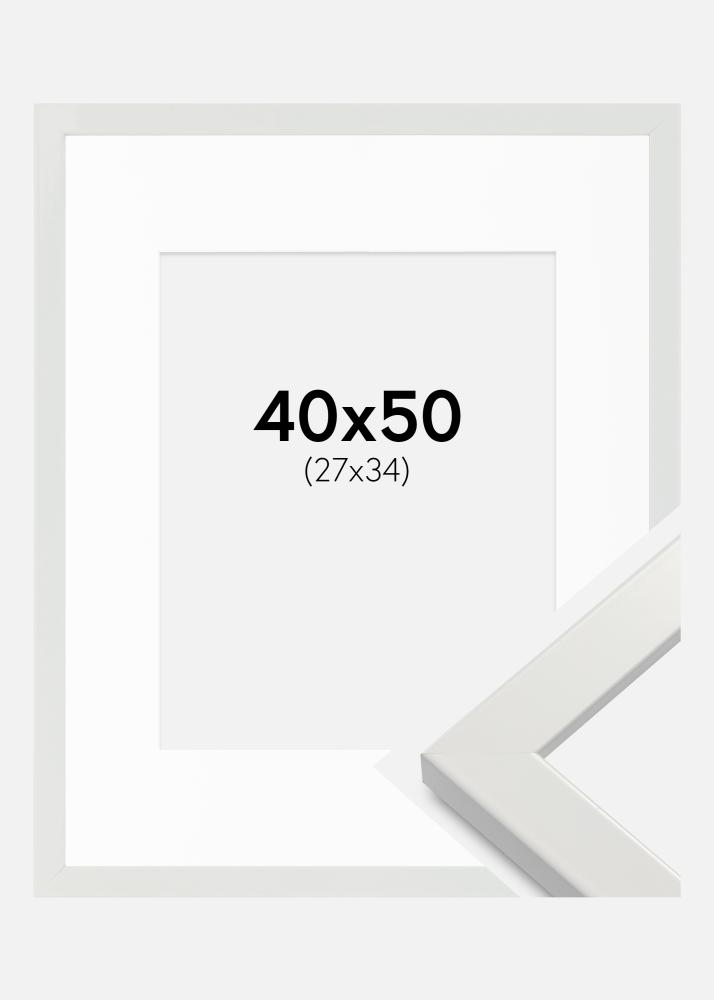 Kehys White Wood Glossy 40x50 cm - Passepartout Valkoinen 28x35 cm