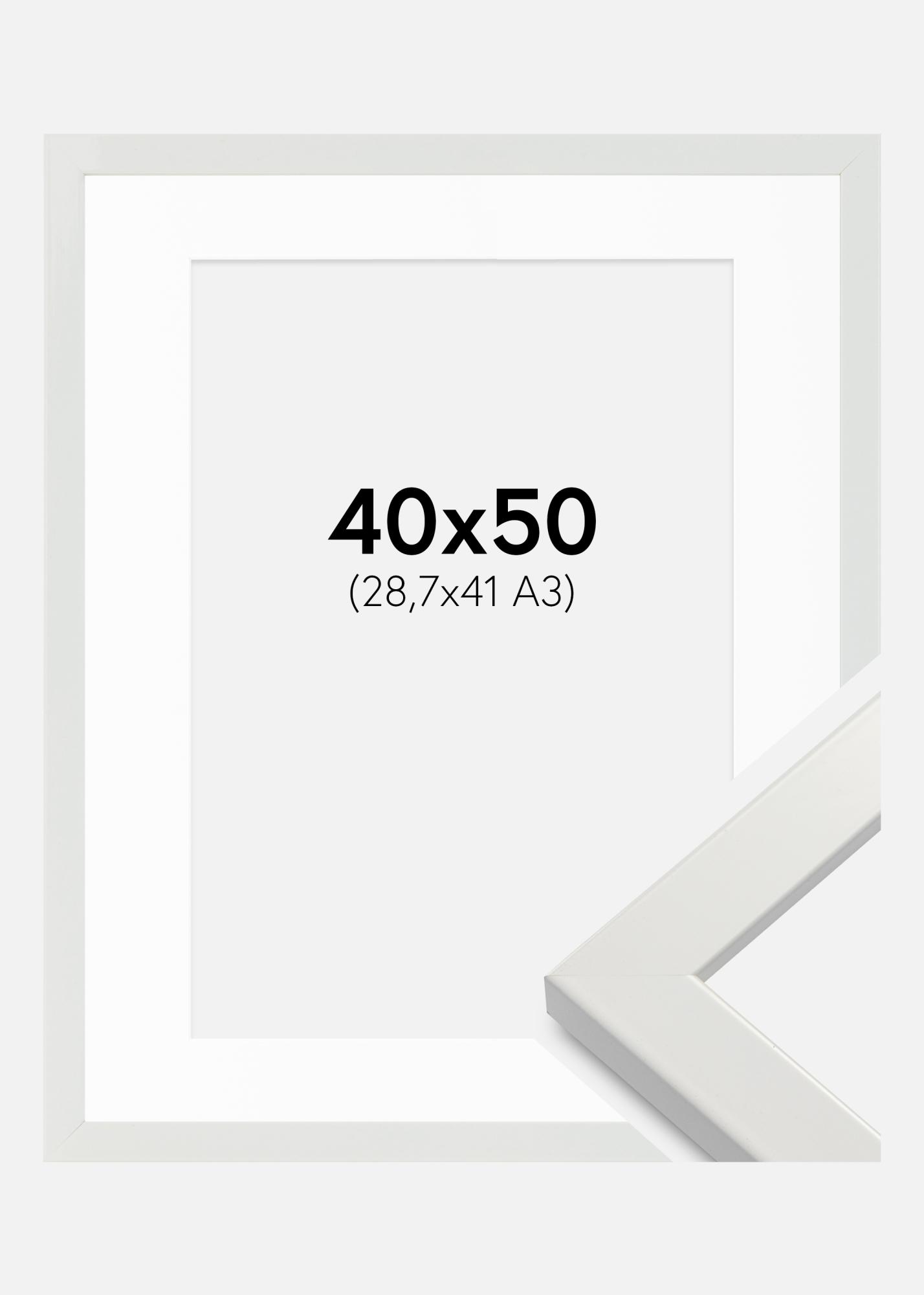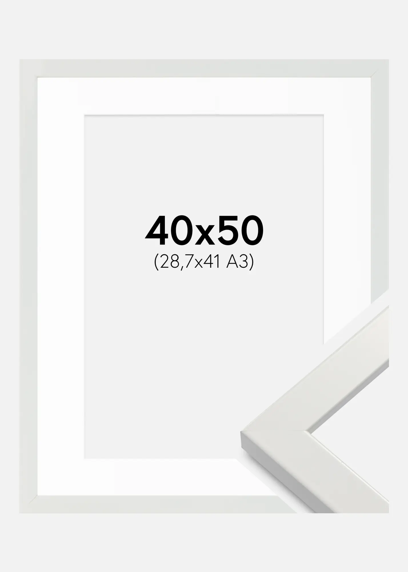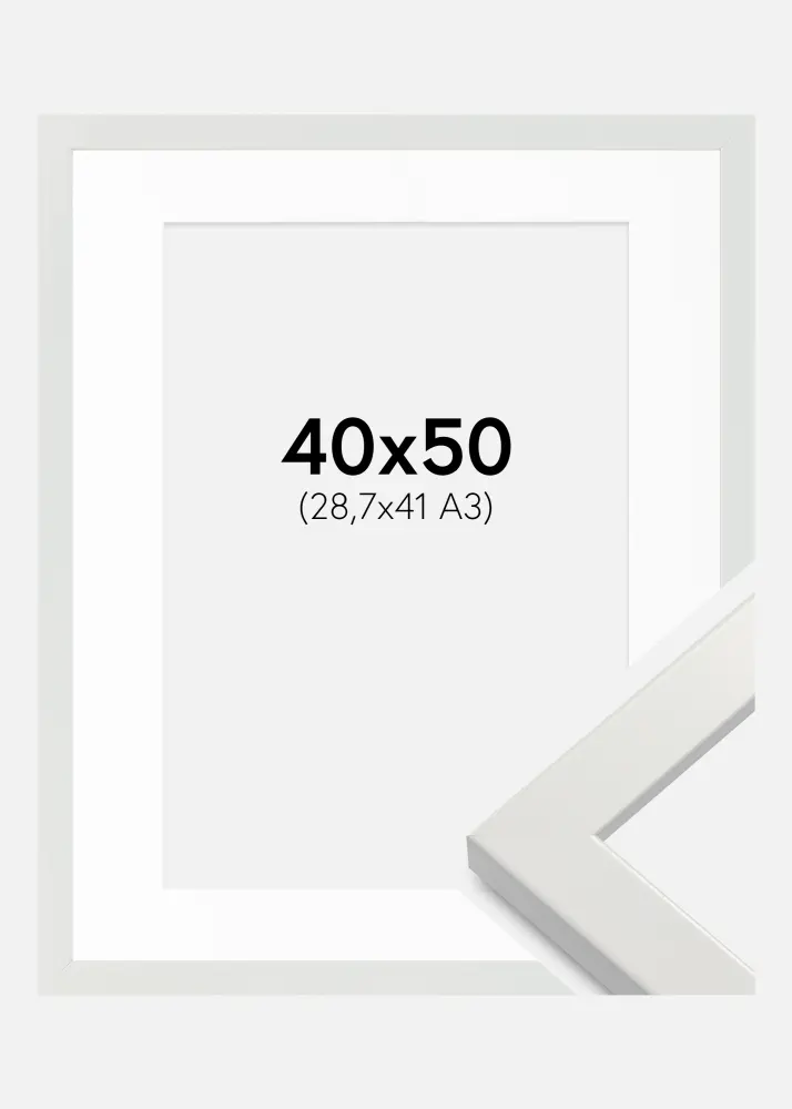Kehys White Wood Glossy 40x50 cm - Passepartout Valkoinen 29,7x42 cm (A3)