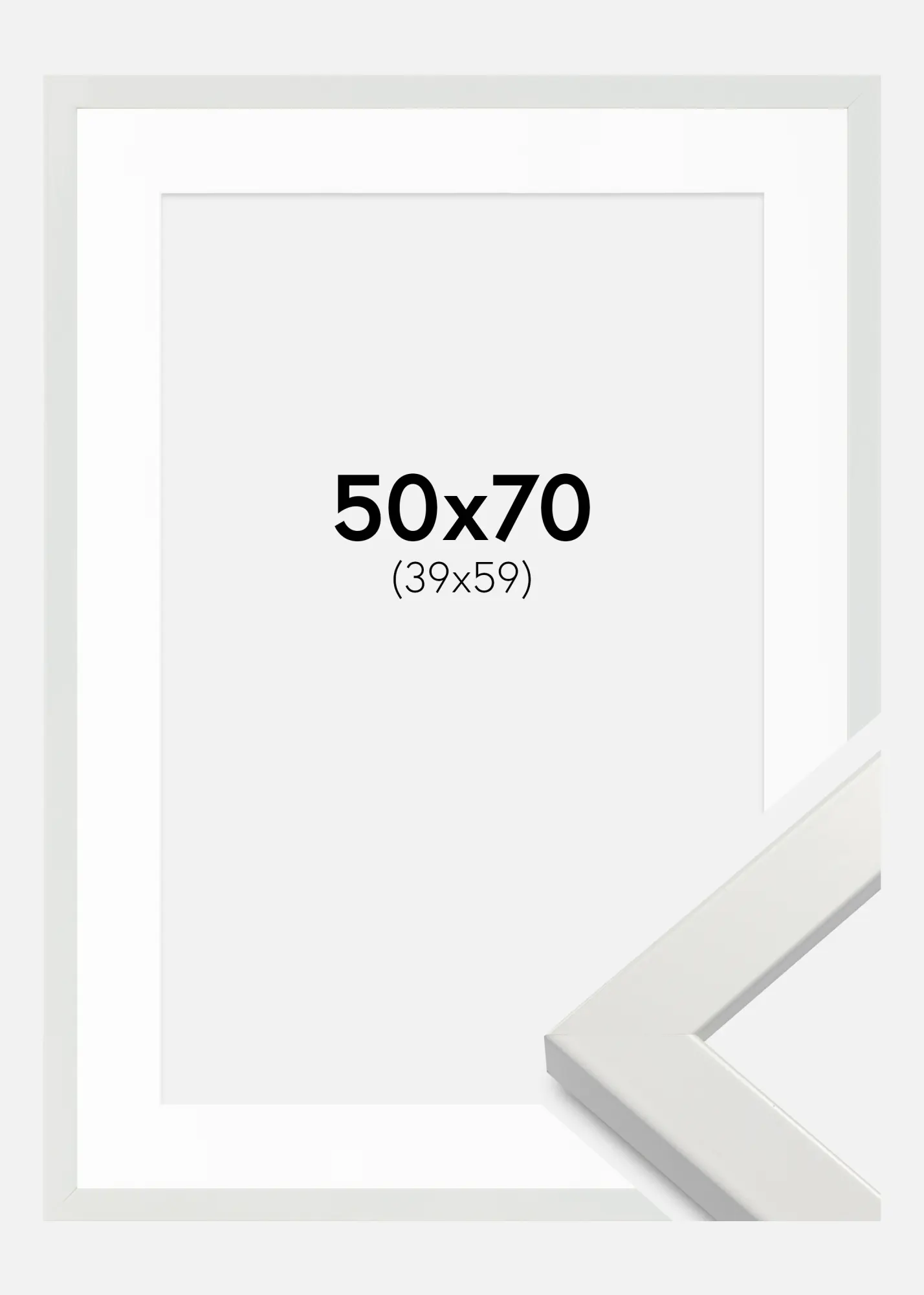Kehys White Wood Glossy 50x70 cm - Passepartout Valkoinen 40x60 cm