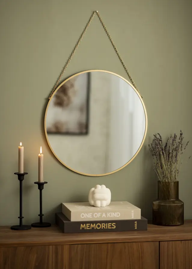 Kullanväriset peilit sopivat luonnollisesti erittäin hyvin kullanväristen kehysten kanssa, jotka löydät myös meiltä. Yhdistä kullanvärisiä yksityiskohtia samalle seinälle ja luot näyttävän sisustuselementin. Voit myös yhdistää kullanvärisiä peilejä ja kullanvärisiä kehyksiä samalle seinälle, tai käyttää kultaisia yksityiskohtia monella eri seinällä. Kokeile itse, kuinka hienolta se näyttää!
