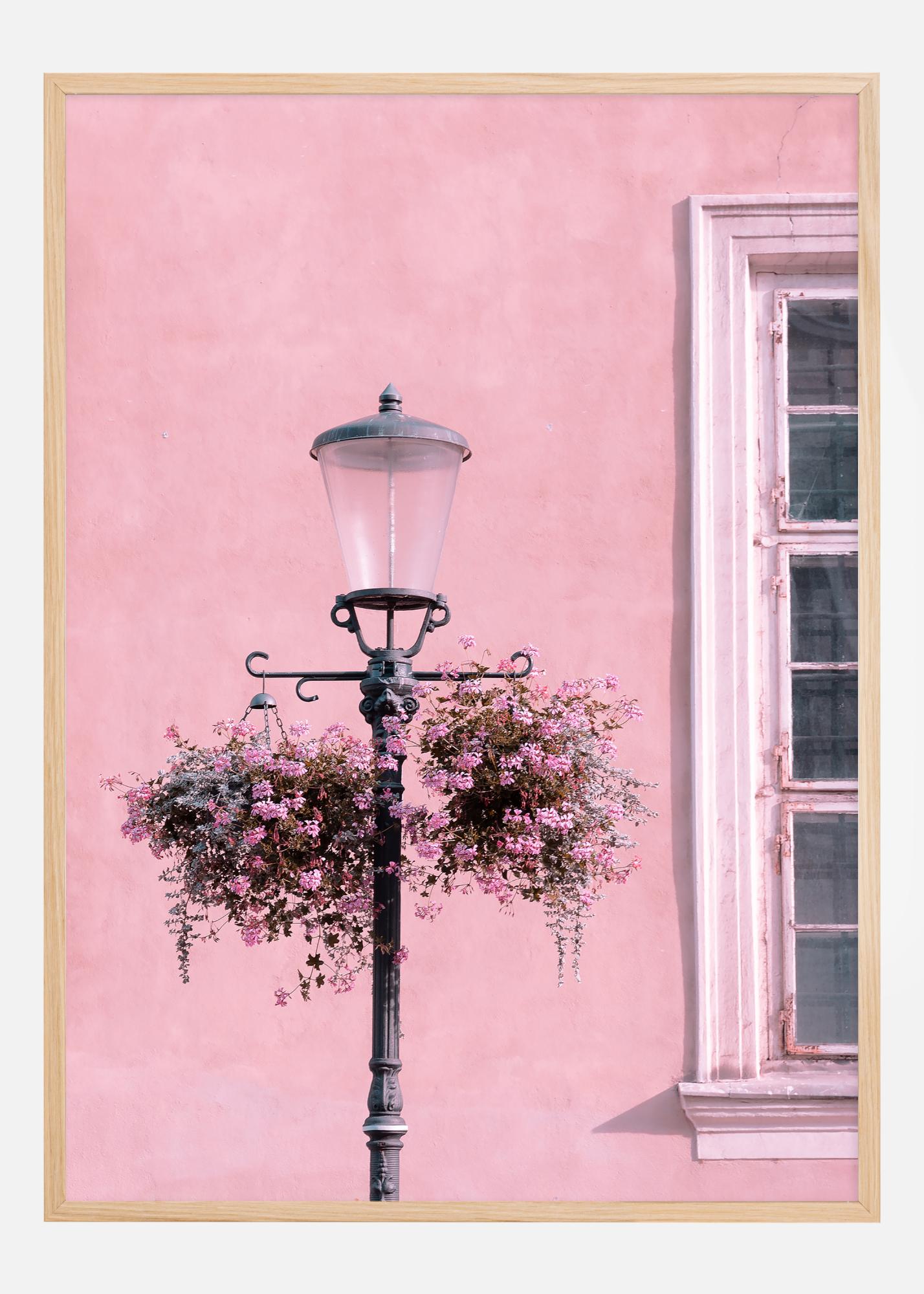 Tämä romanttinen juliste kuvaa klassista lyhtypylvästä, joka on koristeltu kukkalaatikoilla, vaaleanpunaisen pastellisen seinän edessä. Se on kuva, joka herättää ajatuksia idyllisistä kaupunkikaduista ja arjen yksinkertaisista kauneuksista. Täydellinen niille, jotka haluavat tuoda palan viehättävää keskustaa omaan kotiinsa. Tämä painettu kuva tuo minkä tahansa paikan loistoonsa lempeällä charmillaan ja vintage-tunnelmallaan.