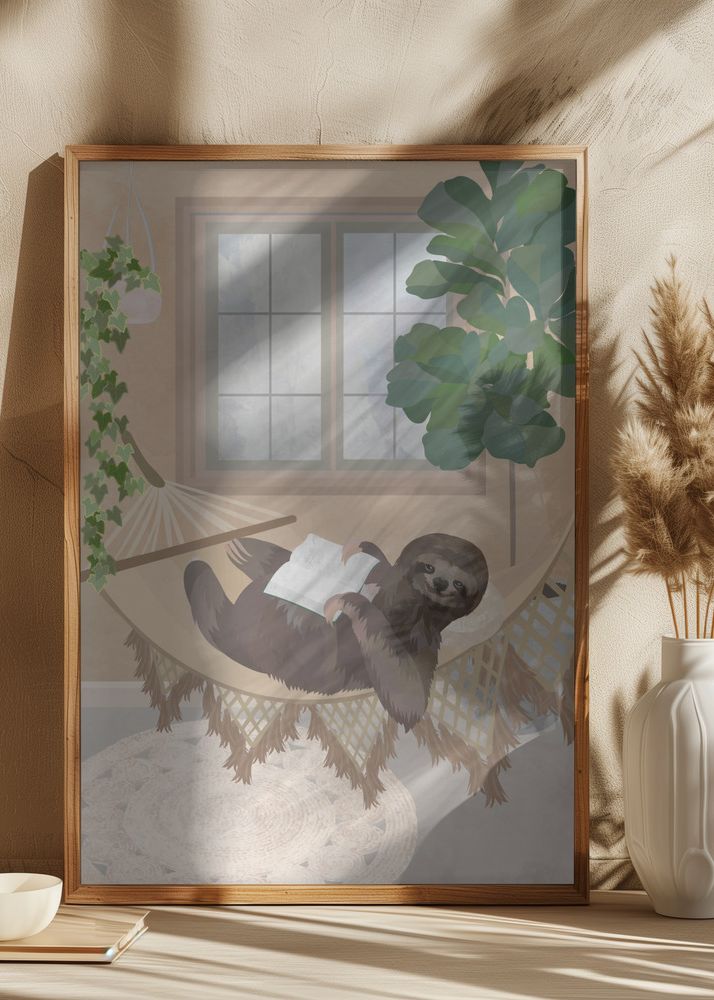 Lazy sloth in hammock Juliste