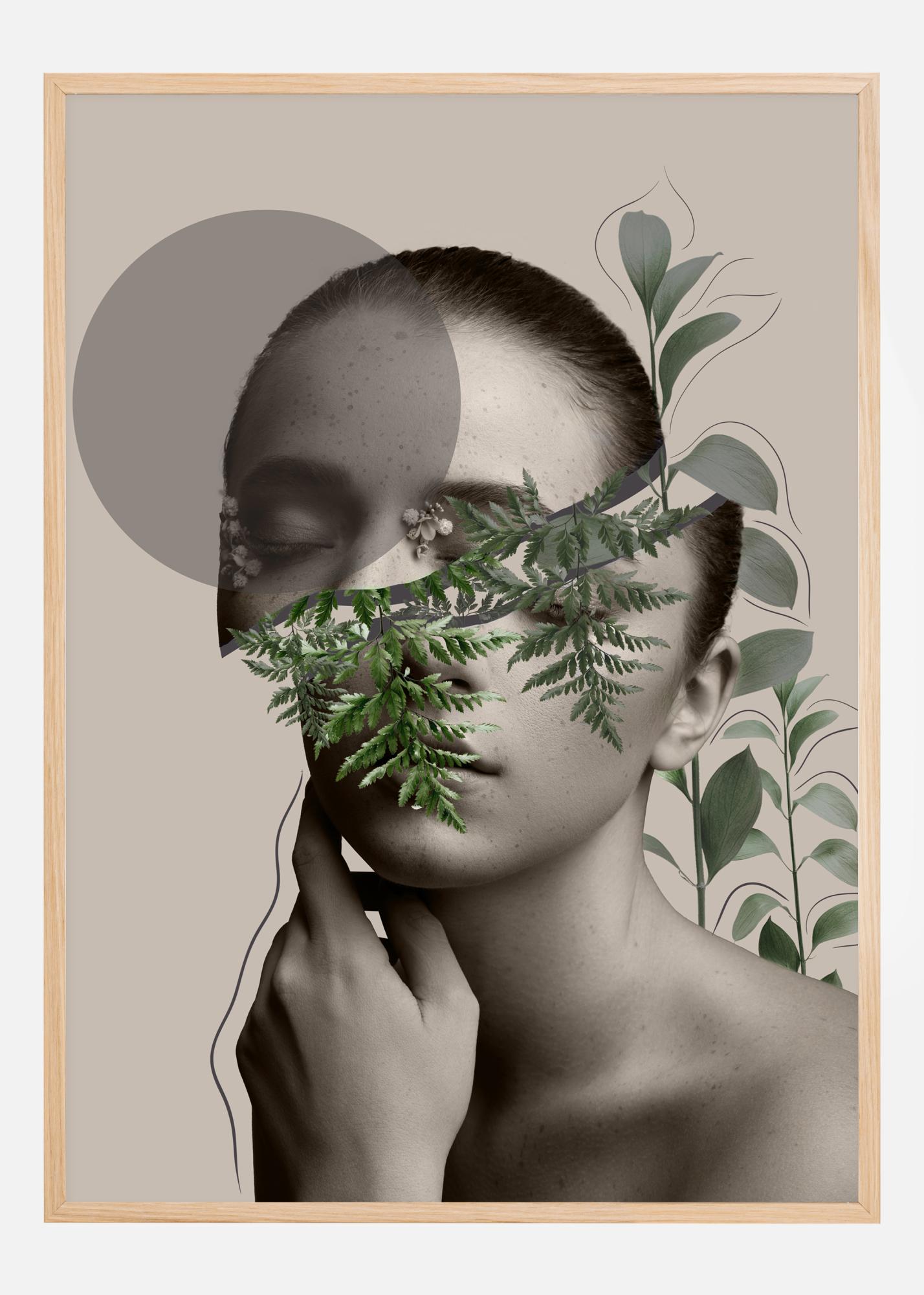 Tämä kaunis muotokuva on saanut inspiraationsa koristelu- ja pintakäsittelytekniikasta. Erilaiset kuvat ovat asetettu vastakkain, jotta saadaan aikaan moderni ja tyylikäs taideteos. Kuvan nuorta tyttöä ympäröi kaunis kasvimaailma, joka luo rauhan ja rauhallisuuden tunteen. Ihanteellinen maalaus avantgardistiseen makuuhuoneeseen tai minimalistiseen olohuoneeseen.