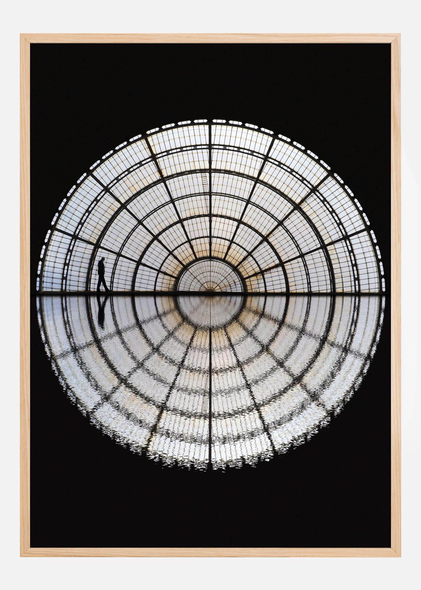 Tämä taiteellinen juliste nimeltään "Midnight Walker" vangitsee yksinäisen hahmon, joka vaeltaa vaikutusvaltaisen valoisen verkon kupolin alla, luoden tunteen sekä suuruudesta että eristyneisyydestä. Visuaalinen kontrasti pimeän yön ja loistavan verkon välillä antaa motiiville eloa, ja katsoja voi tuntea yksinäisen kävelyn hiljaisen rauhan.