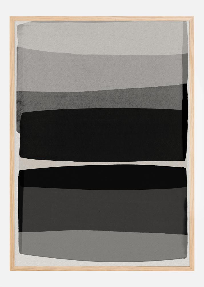 Luo modernin minimalismin tunne kotiisi tällä tyylikkäällä julisteella. Suunnittelua leimaavat vaakasuorat viivat, joiden paksuus ja harmaan sekä syvän mustan sävyt vaihtelevat, luoden hienovaraisen mutta voimakkaan visuaalisen vaikutuksen. Tämä juliste on täydellinen esitys nykytaiteen kyvystä käyttää yksinkertaisuutta luomaan pysyvän vaikutelman.