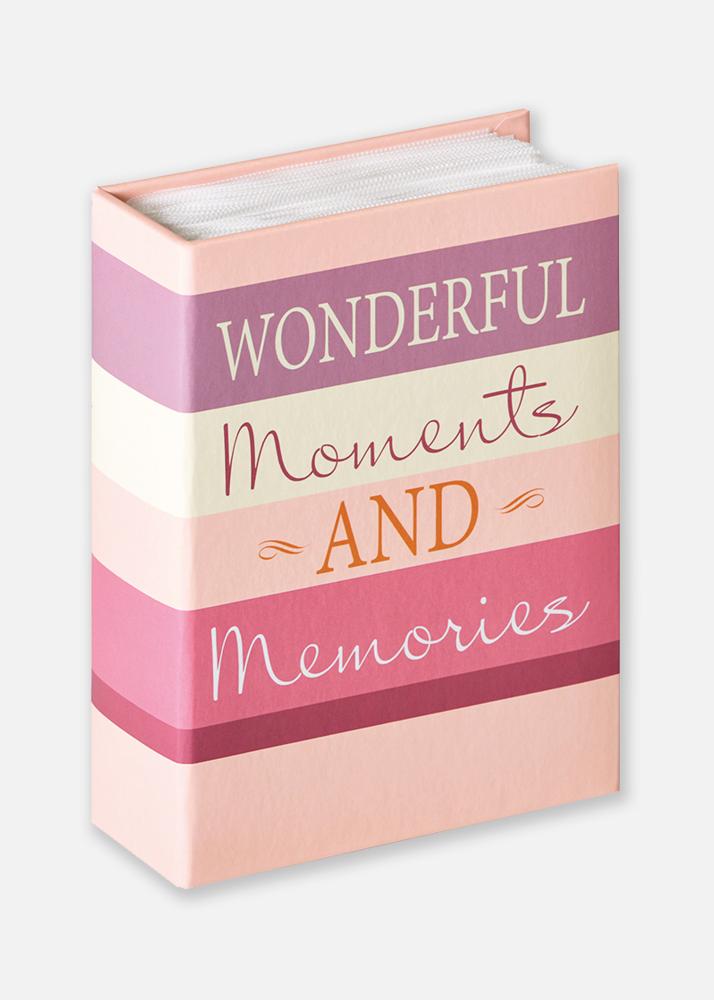 Haluatko koota monta kuvaa yhteen ja samaan albumiin? Moments Wonderful, jossa on tilaa 100 kuvalle koossa 10x15 cm, on sekä kaunis katsella että käytännöllinen valokuvataskuineen. Todella hyvä valinta siis!