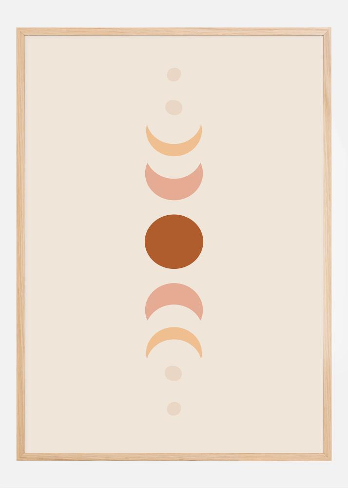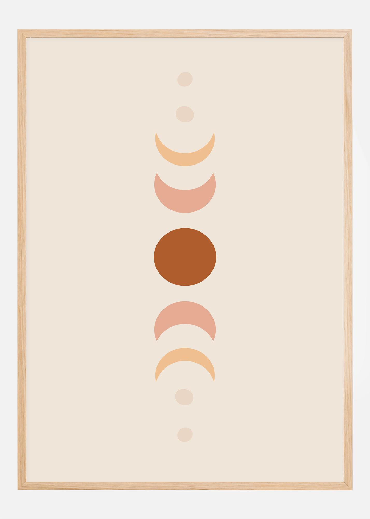 Tämä esteettisesti miellyttävä juliste, joka esittää kuun vaiheet pystysuorassa järjestyksessä, tarjoaa rauhoittavan ja puhtaan muotoilun, joka antaa mihin tahansa huoneeseen rauhan ja harmonian tunteen. Uudesta kuusta täysikuuhun, jokainen vaihe on esitetty pehmeissä pastellisävyissä neutraalia taustaa vasten, luoden hienovaraisen mutta voimakkaan visuaalisen kokemuksen.