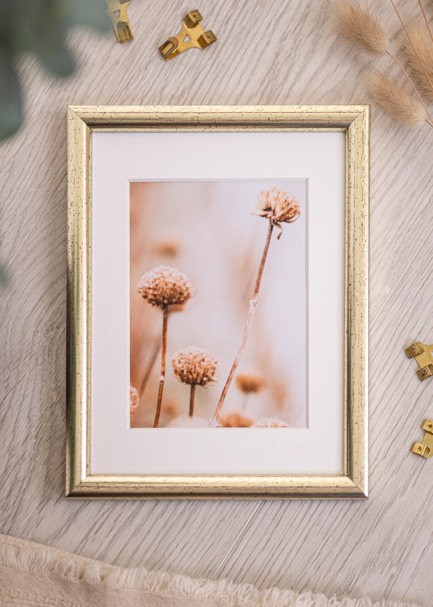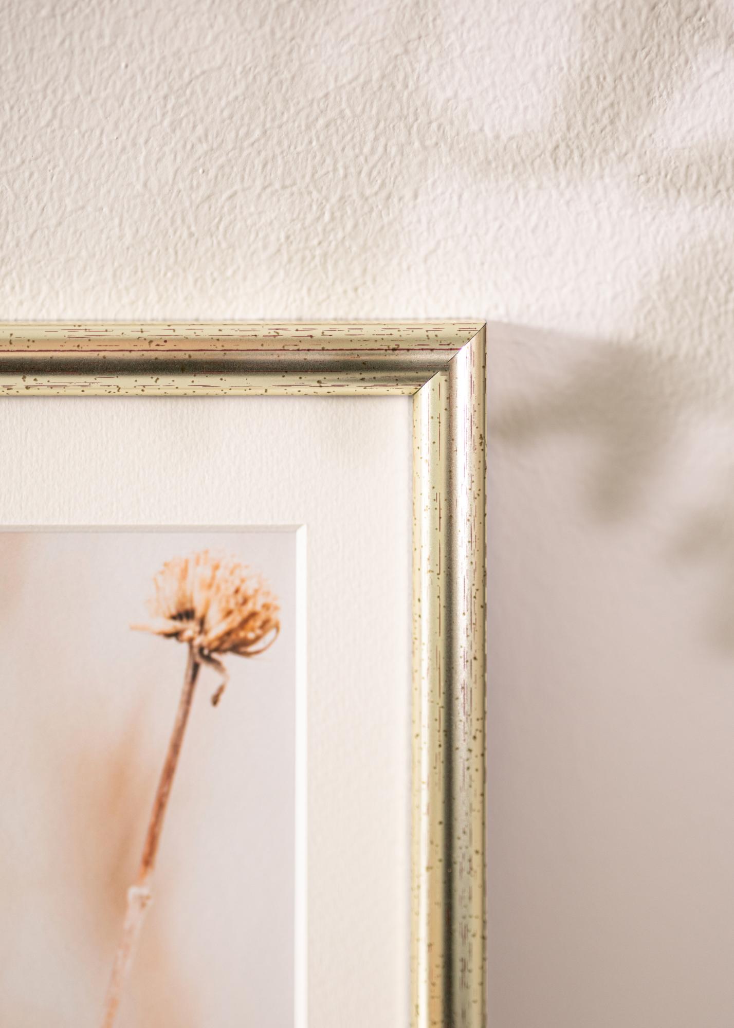 Käynnistä kehysvalitsin »Ohuiden (15 mm) Newline Hopeanvärinen- kehysten kuvio vetää huomion kuvan kohteeseen. Kehyksen väri on sekoitus sekä kultaa että hopeaa.
