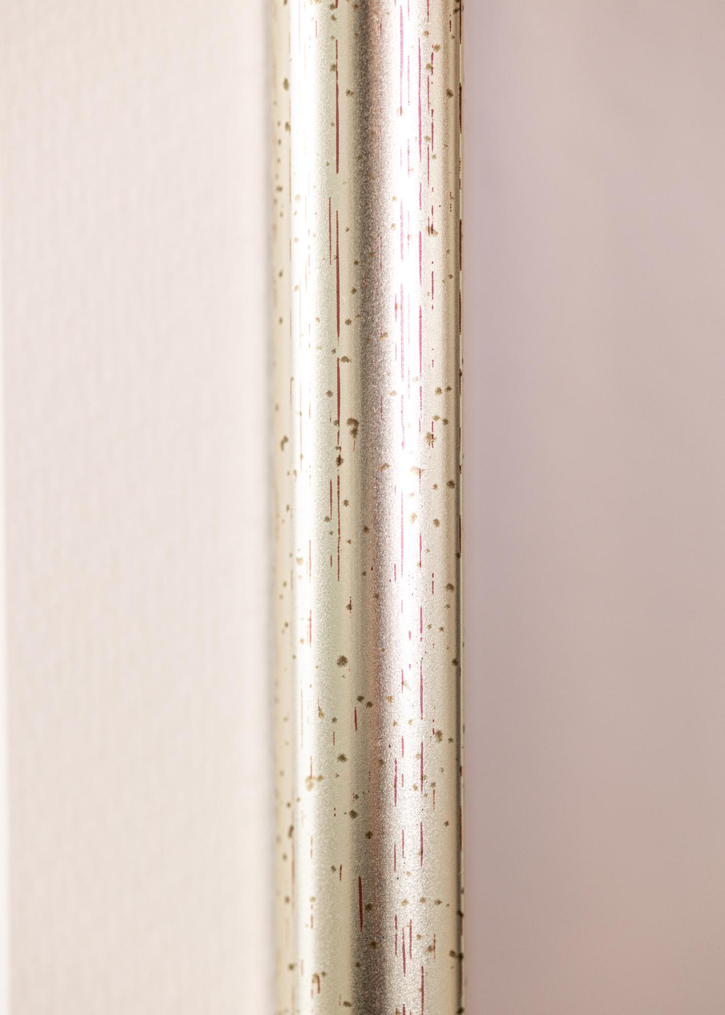 Ohuiden (15 mm) Newline Hopeanvärinen- kehysten kuvio vetää huomion kuvan kohteeseen. Kehyksen väri on sekoitus sekä kultaa että hopeaa.
