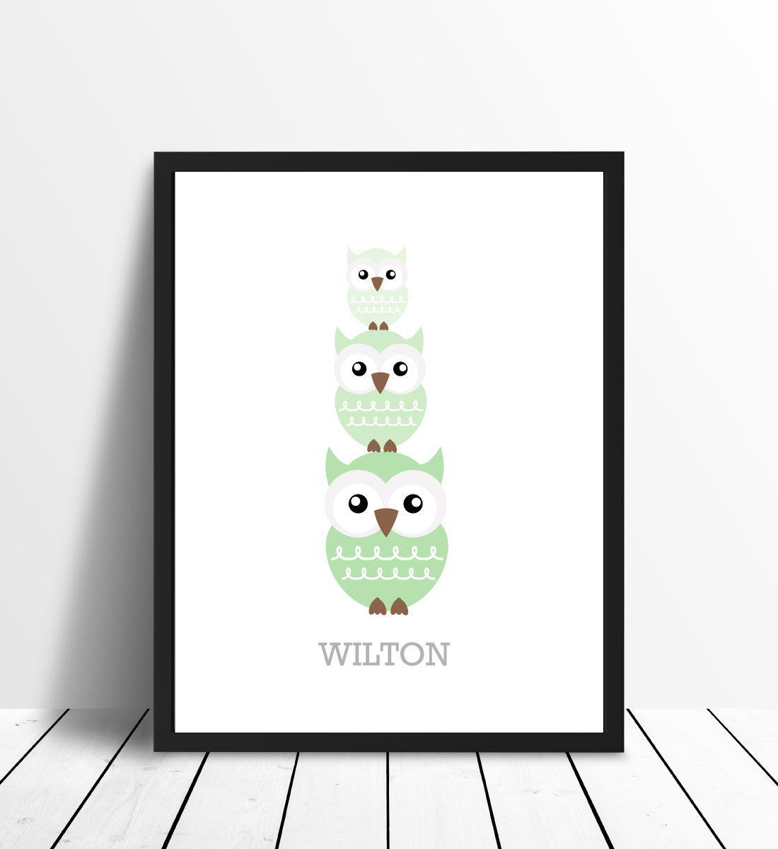 Owls Birth Poster Green (21x29,7 cm (A4))