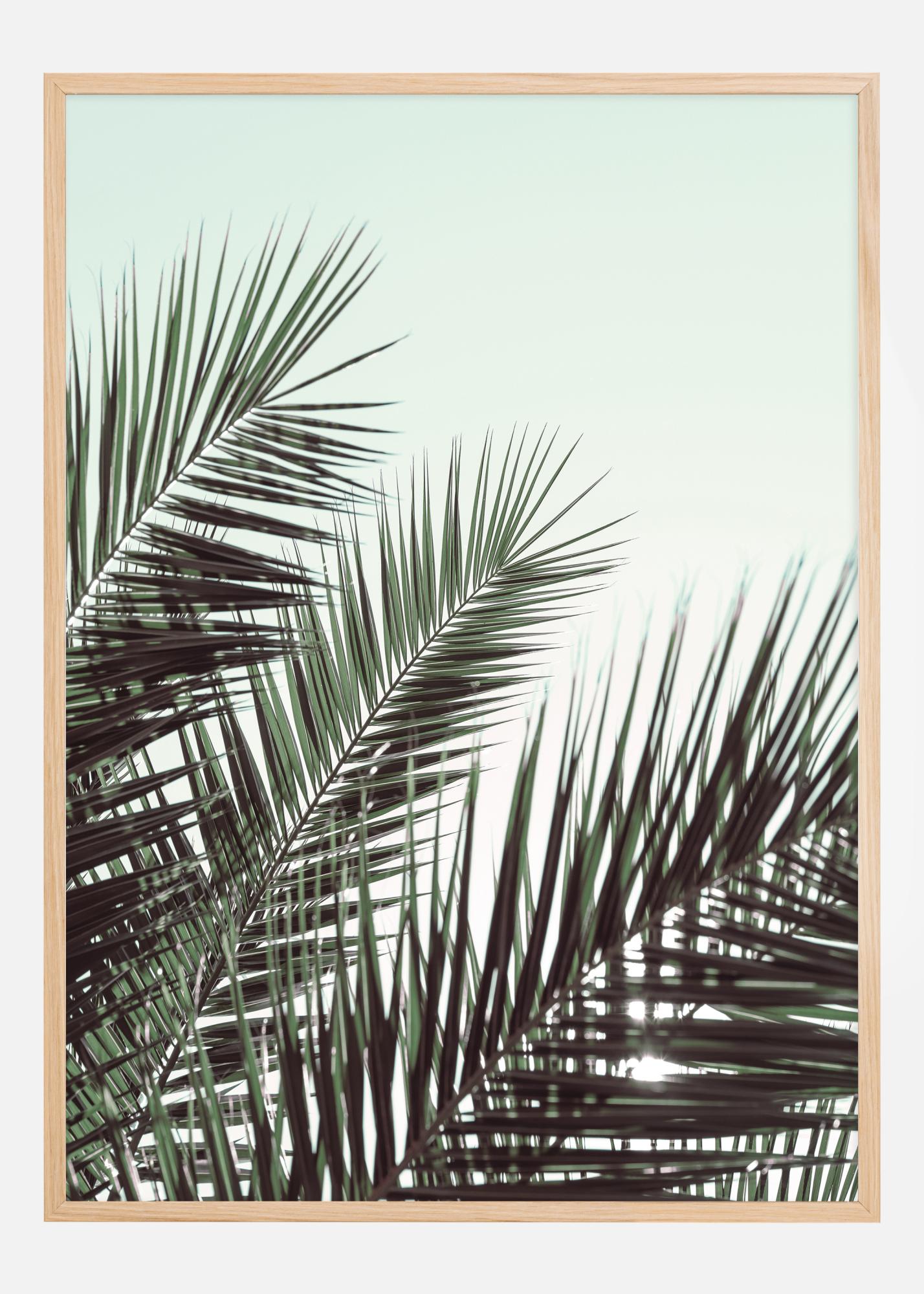 Muunna kotisi trooppiseksi keitaaksi tällä hienostuneella julisteella, joka kuvaa reheviä palmulehtiä pastellinväristä taivasta vasten. Tämä juliste vangitsee kevyen tuulen ja rauhan, joka löytyy vain lämpimästä ilmastosta. Yksityiskohtaiset vihreät lehdet ovat kauniisti esillä pehmeää taivaansinistä taustaa vasten, luoden tilaan ikuisen kesän ja luonnon tunnelmaa.